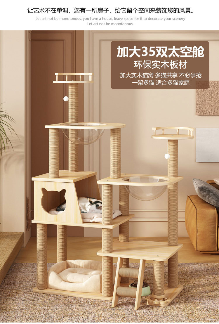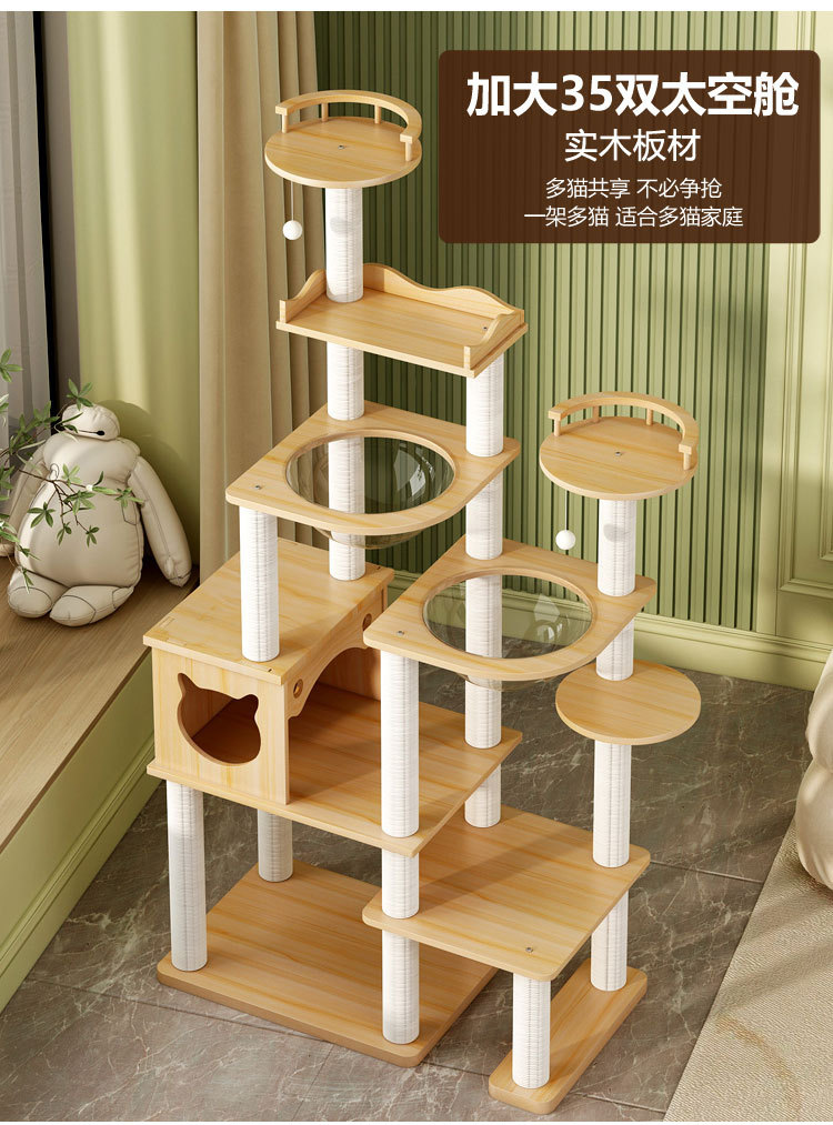 원목 고양이 클라이밍 프레임, 고양이 둥지, 고양이 트리, 일체형 고양이 스크래치 컬럼, 대형 천둥, 확장된 우주 캡슐 고양이 용품