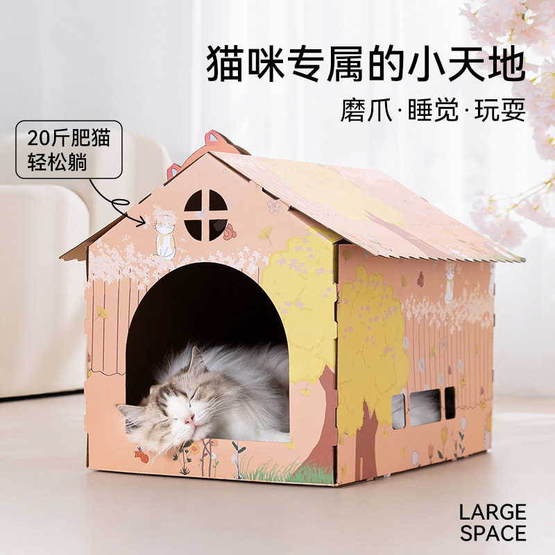 만화 숲 상자 고양이 스크래치 보드 고양이 둥지 스크래치 방지 및 내마모성 골판지 고양이 장난감 및 수면 올인원 애완 동물 용품스토어 가기