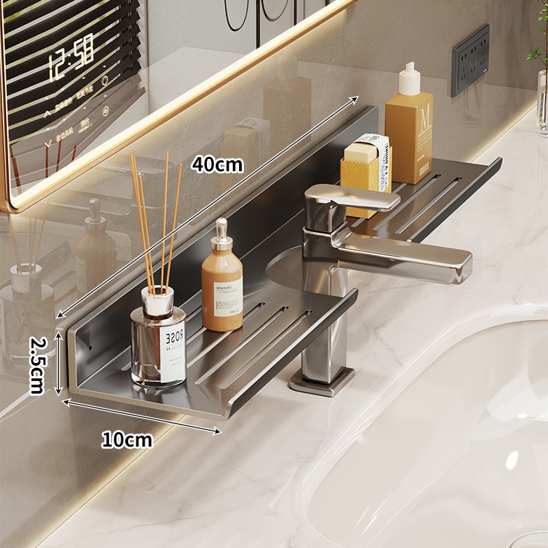 세면대 수납 선반 가정용 펀치 없는 벽걸이형 욕실 세면대 거울 전면 수도꼭지 수납 선반