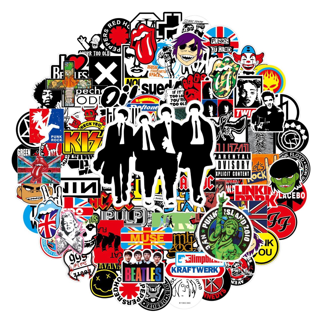 100개의 록 밴드 스티커, 여행가방, 스케이트보드, 노트북, 방수 아마존 인기 스티커 도매
