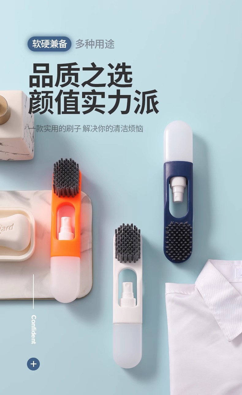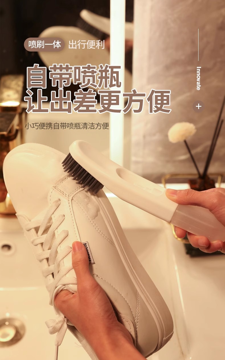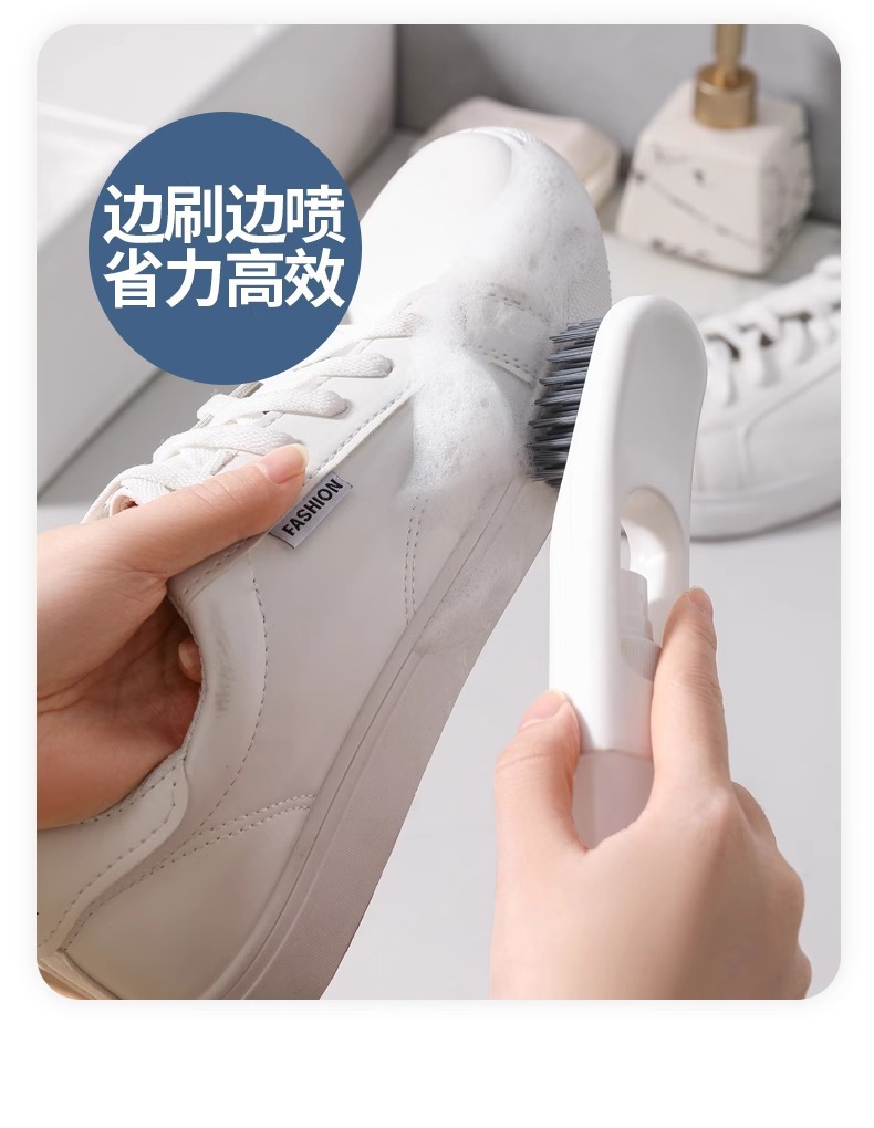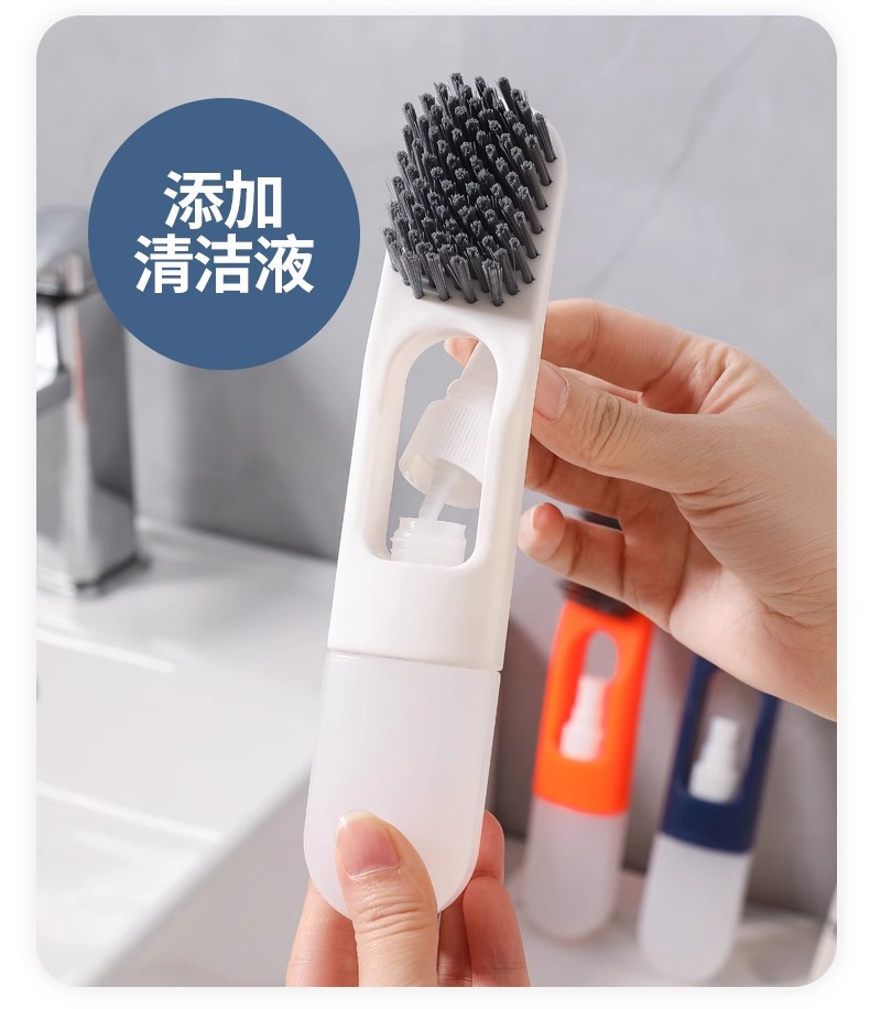 액체를 누르면 액체가 나오는 다기능 액체 추가 신발 브러시, 신발 세척 브러시, 스프레이 병이 있는 신발 도구, 부드러운 모의 의류 청소 브러시