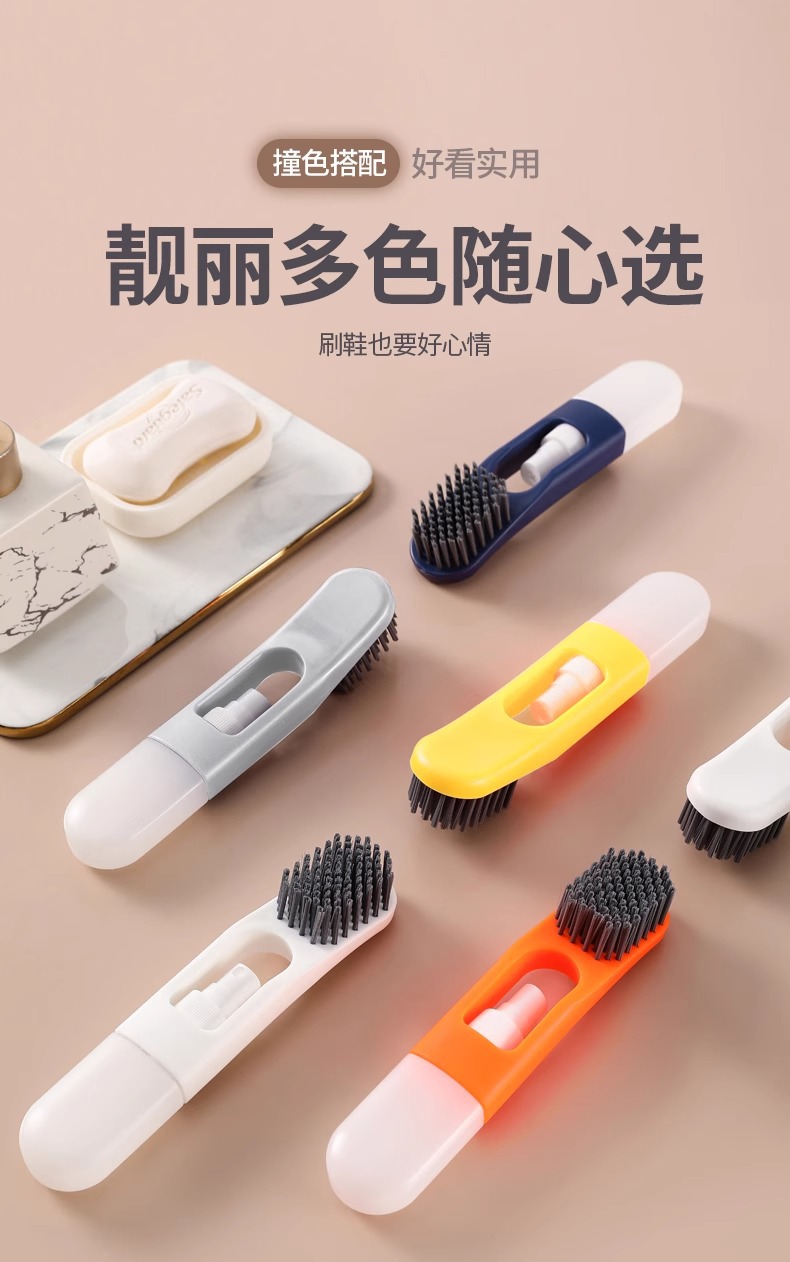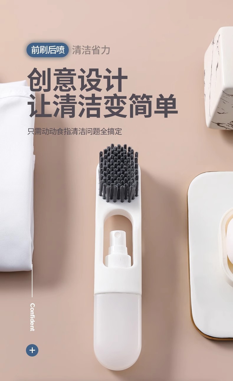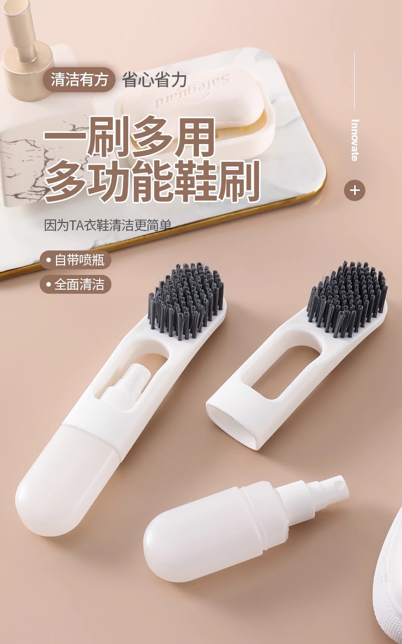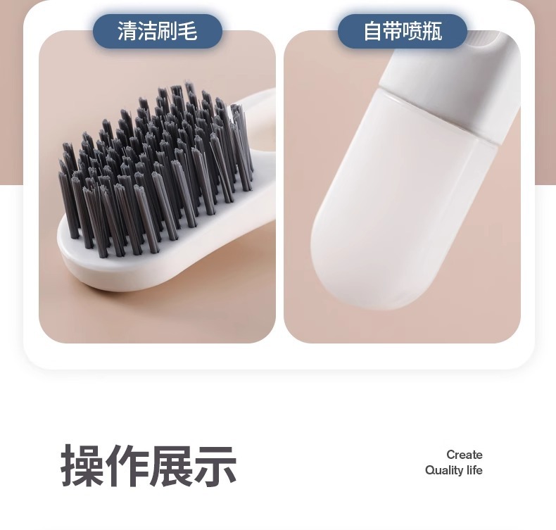 액체를 누르면 액체가 나오는 다기능 액체 추가 신발 브러시, 신발 세척 브러시, 스프레이 병이 있는 신발 도구, 부드러운 모의 의류 청소 브러시