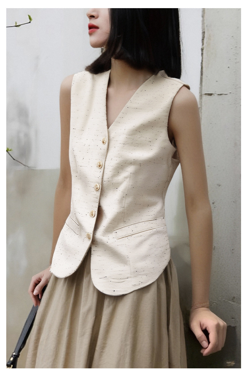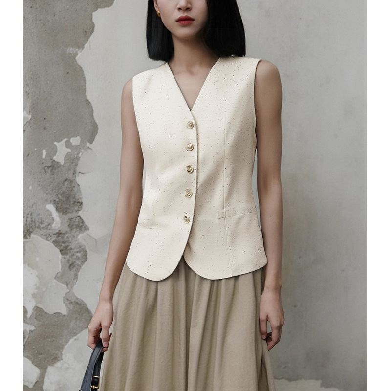 여성을위한 프랑스 복고풍 정장 조끼 여름 새로운 스타일 2025 서양식 조끼 민소매 패션 짧은 코트 탑