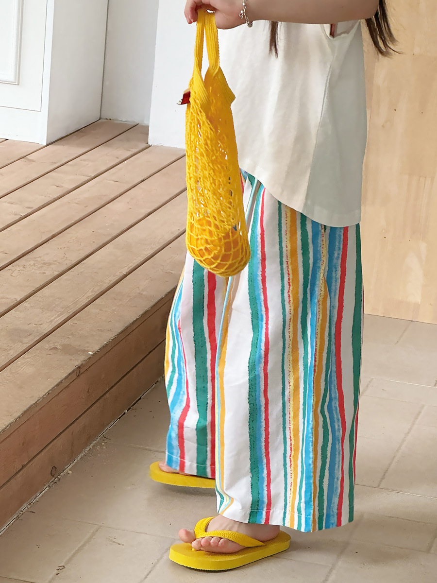 Yuyu Princess Girls 한국어 버전 레인보우 스트라이프 와이드 레그 팬츠 아기 소녀 여름 루즈 도파민 스트레이트 팬츠