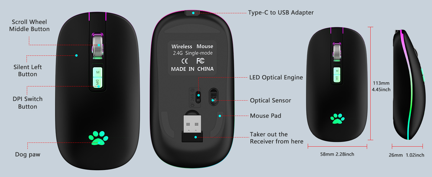 국경 간 인기 마우스 무선 2.4G 단일 모드 마우스 컴퓨터 충전식 무음 사무실 게임 무선 마우스스토어 가기