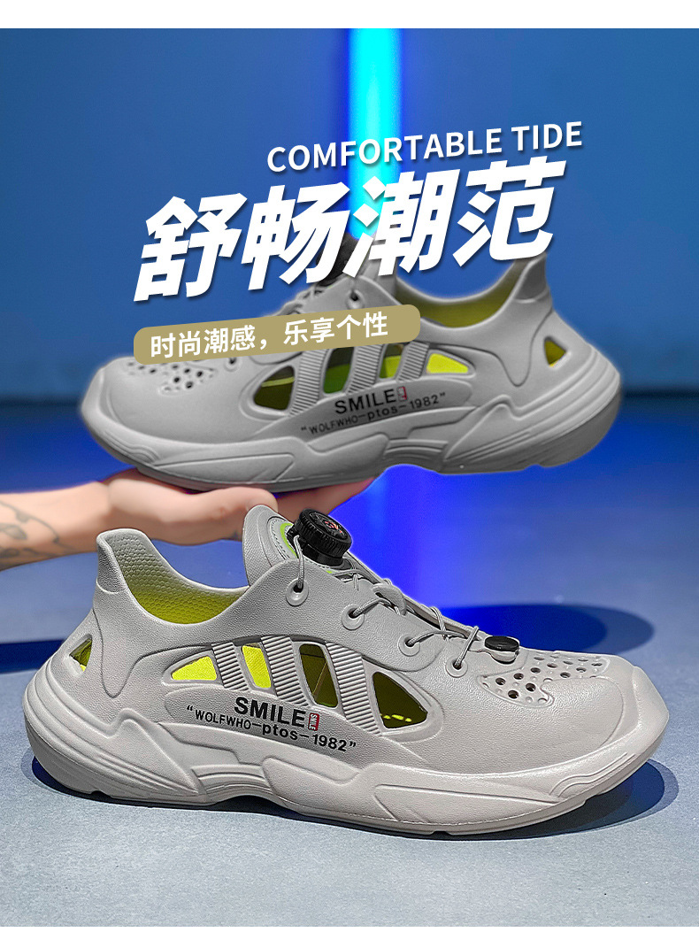 夏季潮流凉拖鞋户外韩版个性旋转扣旅游海边洞洞鞋厚底增高朔溪鞋