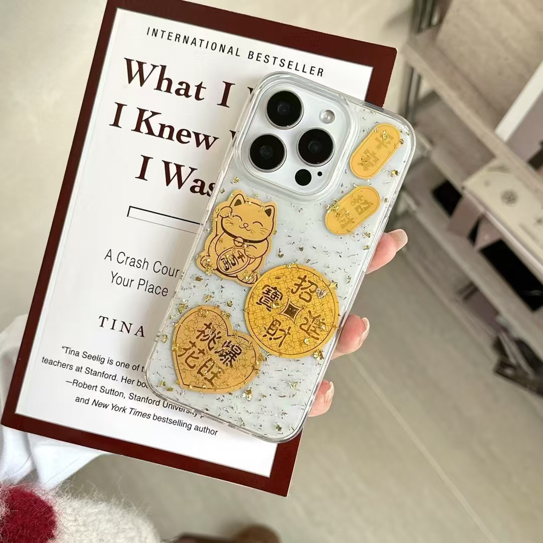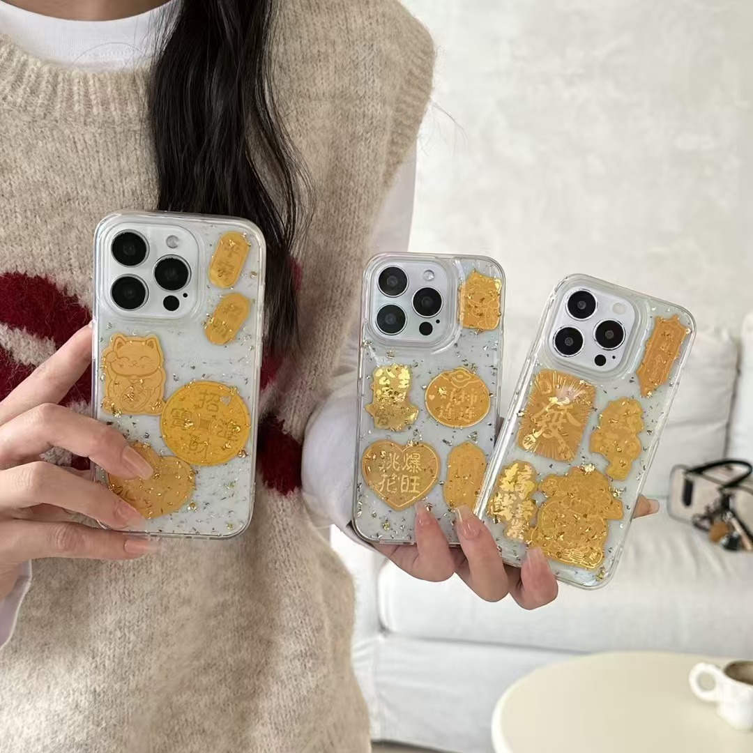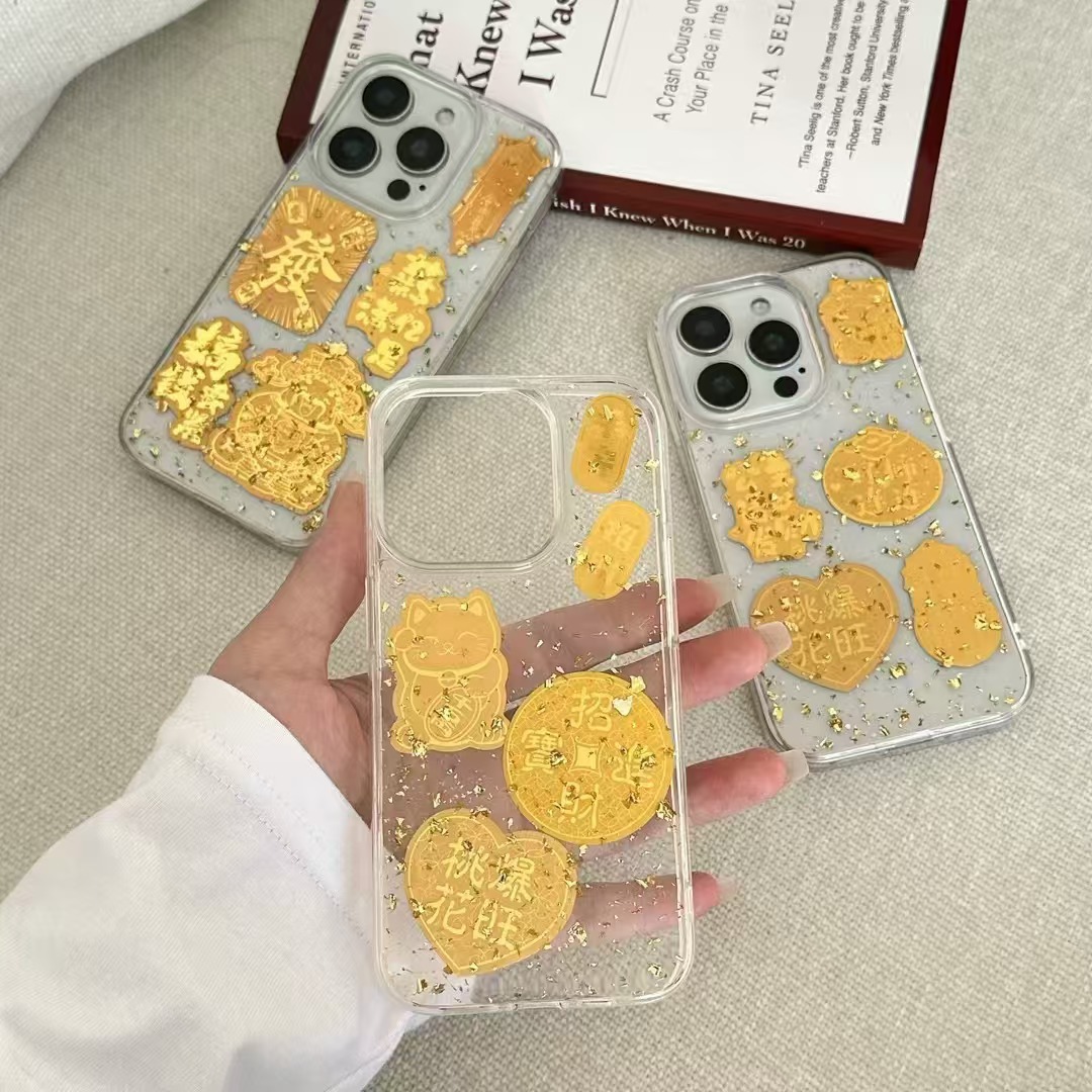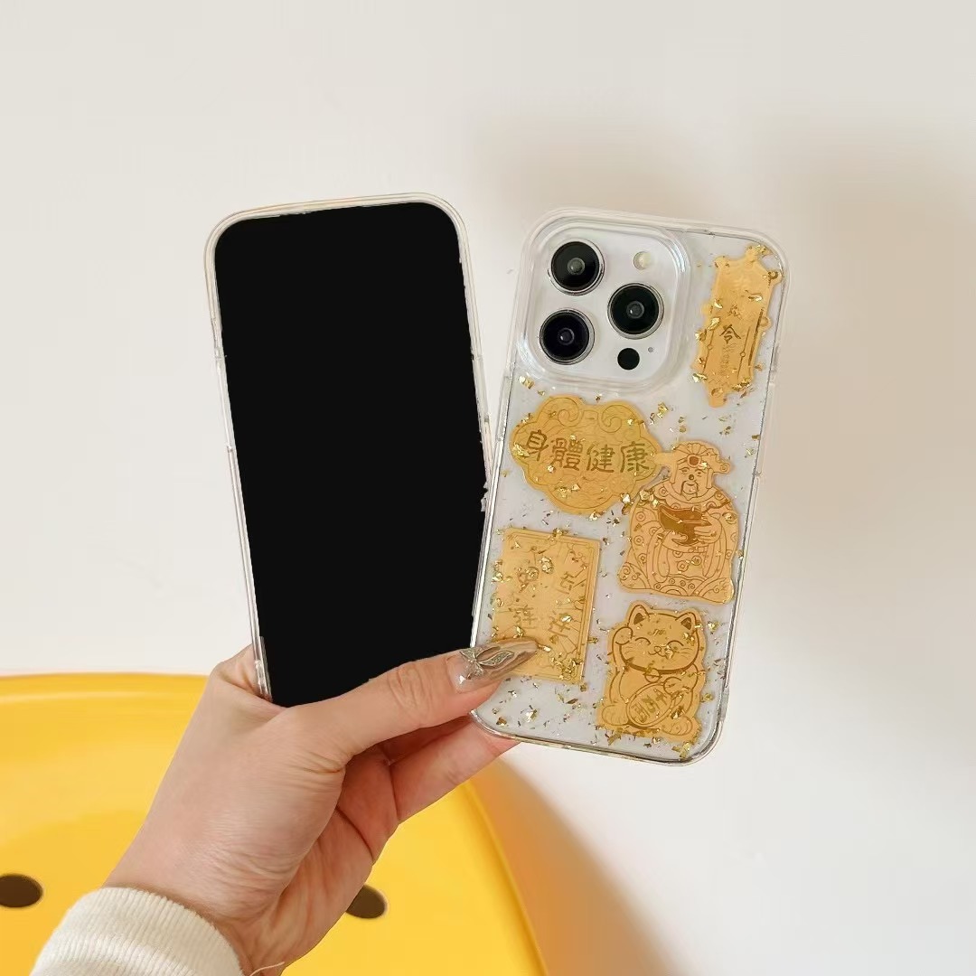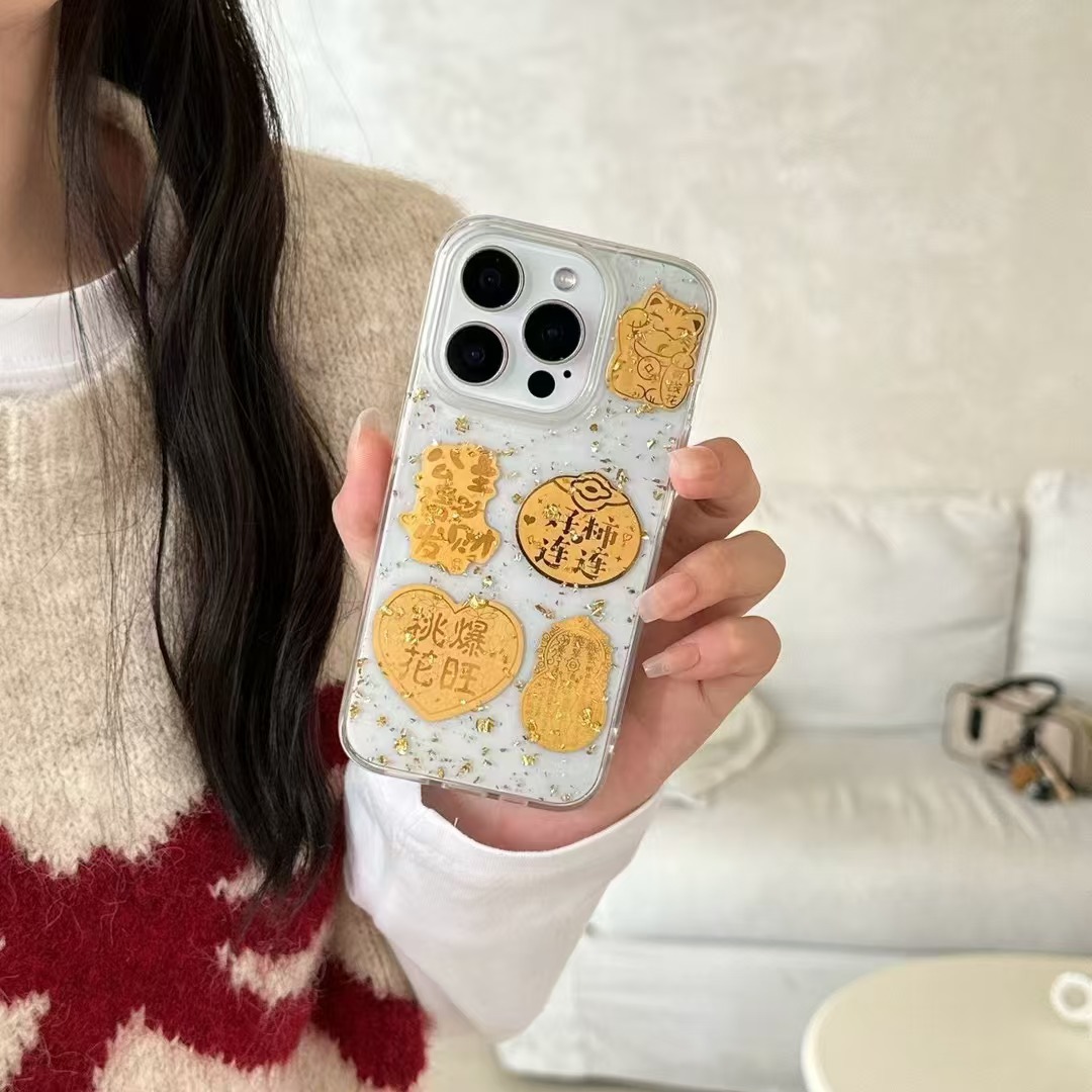 Apple 16promax 접착제 금박 휴대폰 케이스에 적합 iPhone15 Fortune Text 14 모든 항목을 포함 13 마모 방지 12스토어 가기