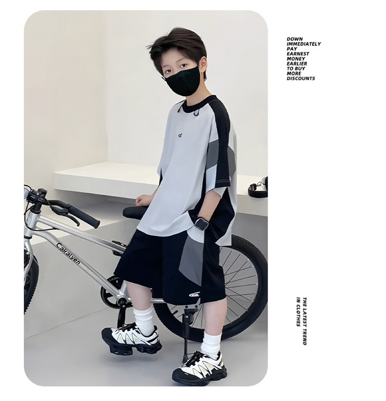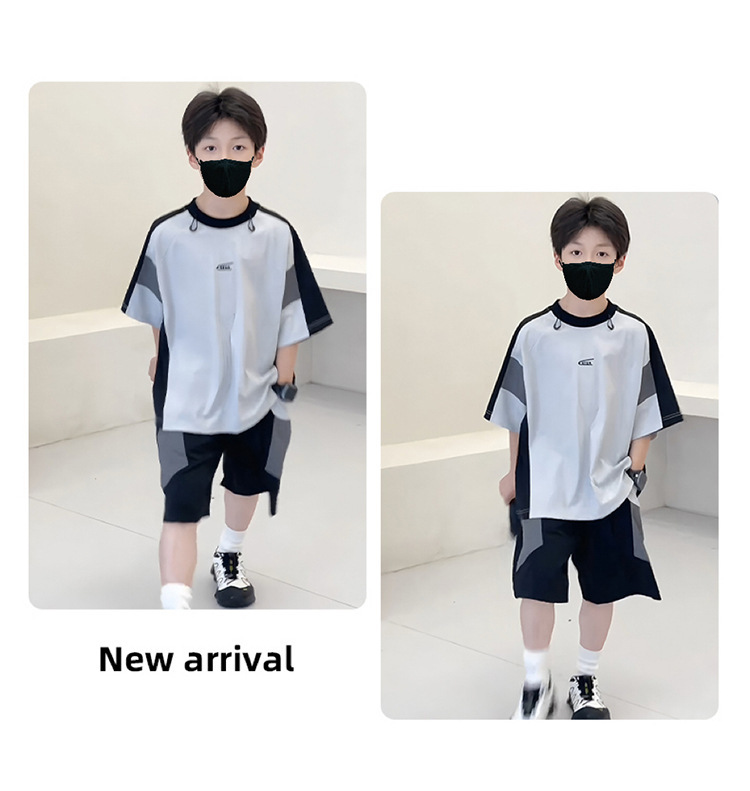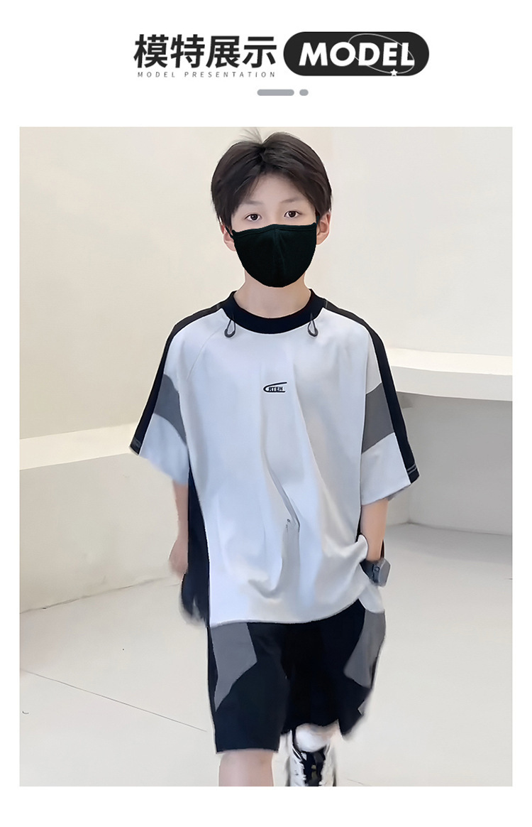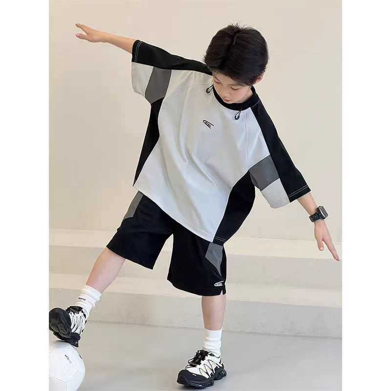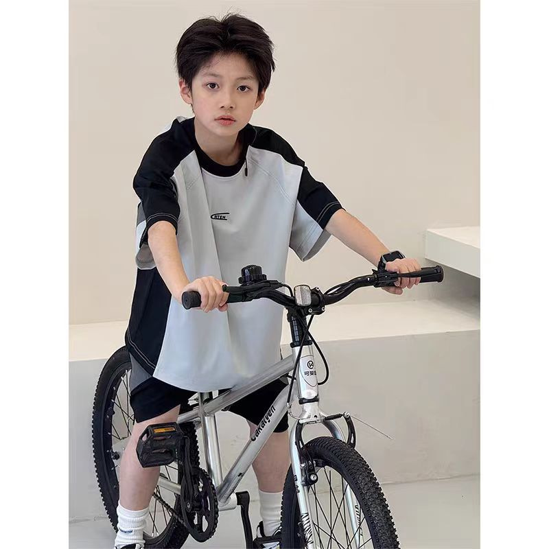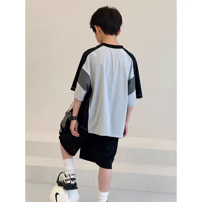 남아 여름복 세트 2026년 신상 중대형 아동용 아이스 실크 속건성 시원한 반팔 여름 아동 스포츠 투피스 세트