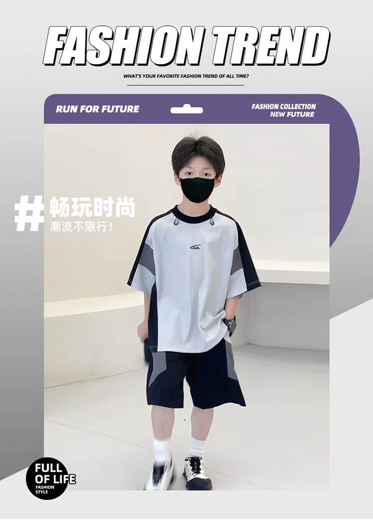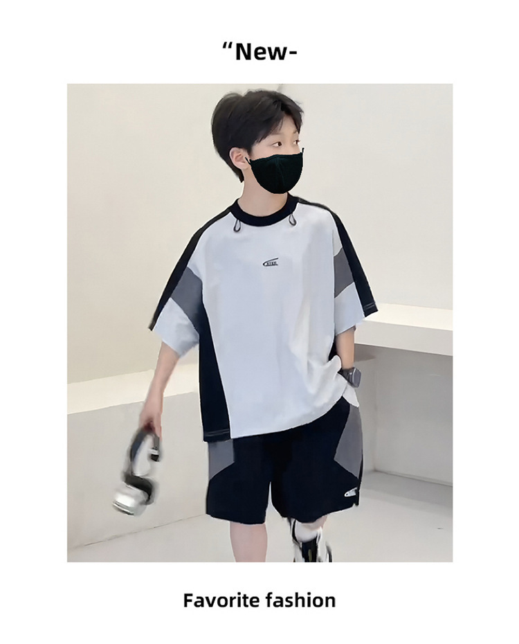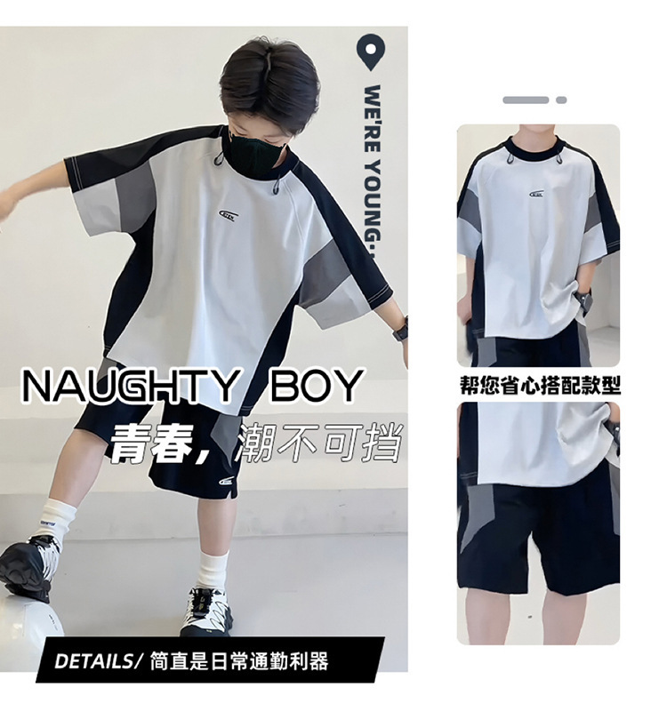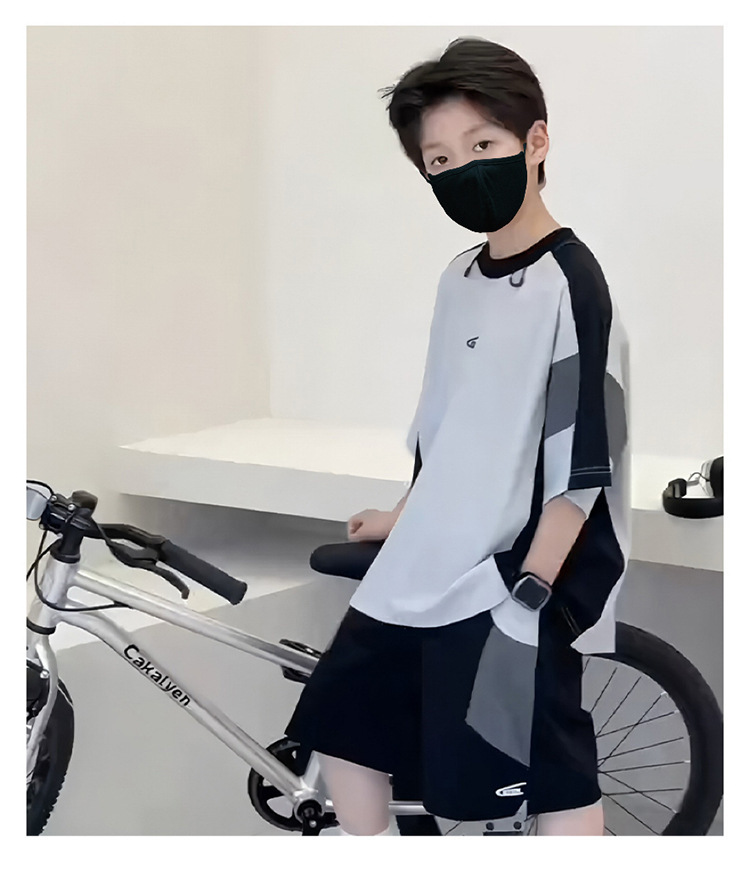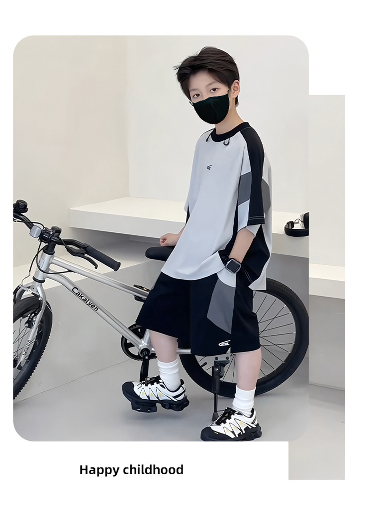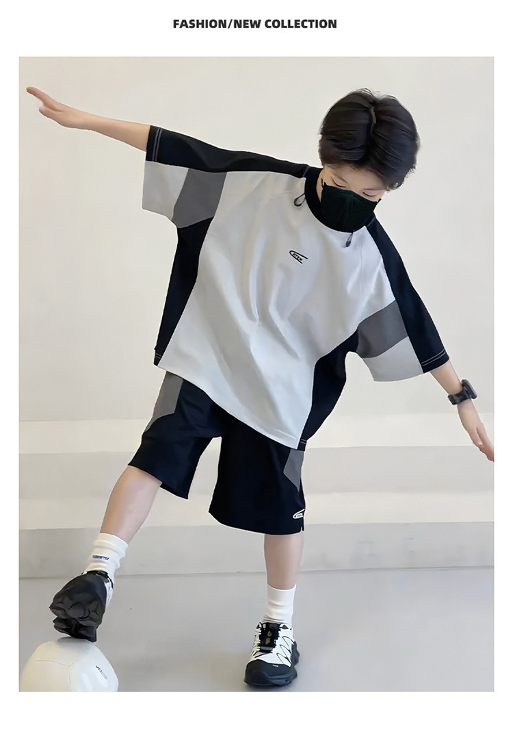 남아 여름복 세트 2026년 신상 중대형 아동용 아이스 실크 속건성 시원한 반팔 여름 아동 스포츠 투피스 세트