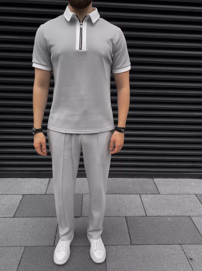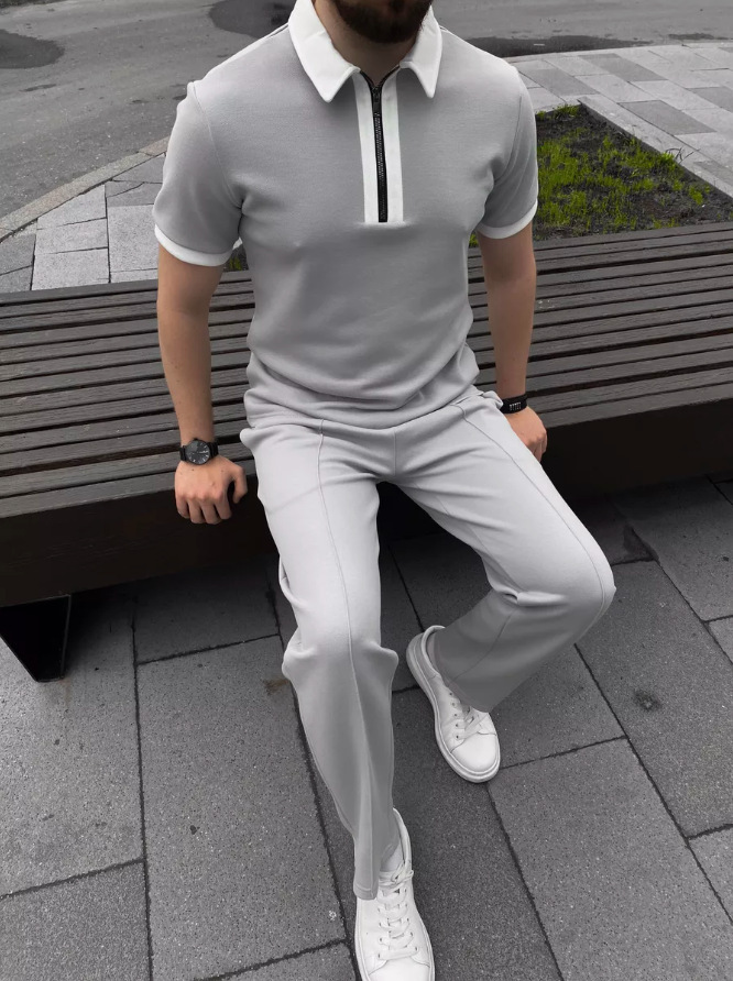 2025 여름 Amazon AliExpress 유럽과 미국 국경 간 남성 폴로 셔츠 지퍼 캐주얼 반팔 반바지 정장