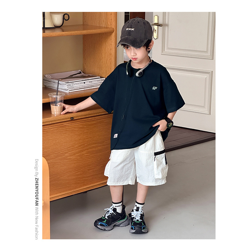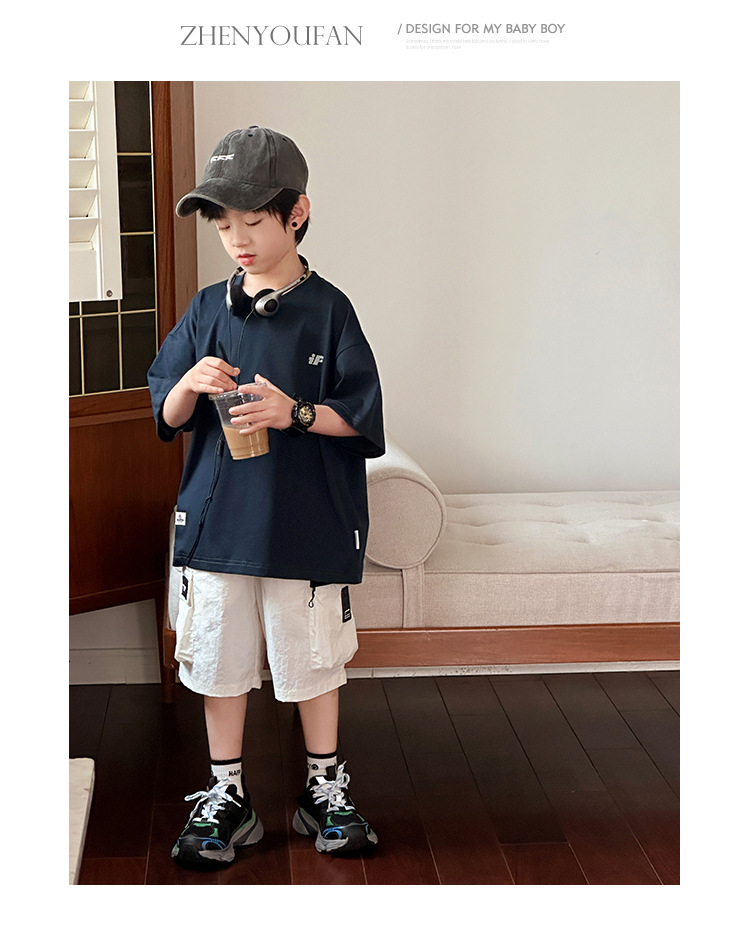 Zhenpinxuan 아동복 소년 Solona 쿨 티셔츠 아동용 반팔 중형 및 대형 아동용 반팔 2025 여름 새로운 트렌드스토어 가기