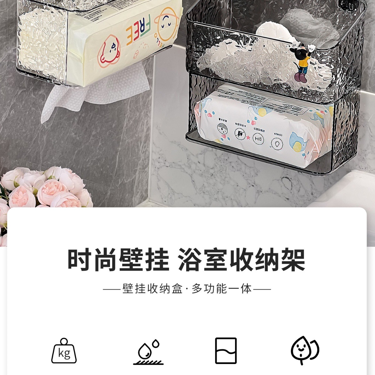 이중 흡입 컵 폐기물 재활용 페이스 타올 보관 상자 벽걸이 형 욕실 욕실 싱크대 이중층 보관함