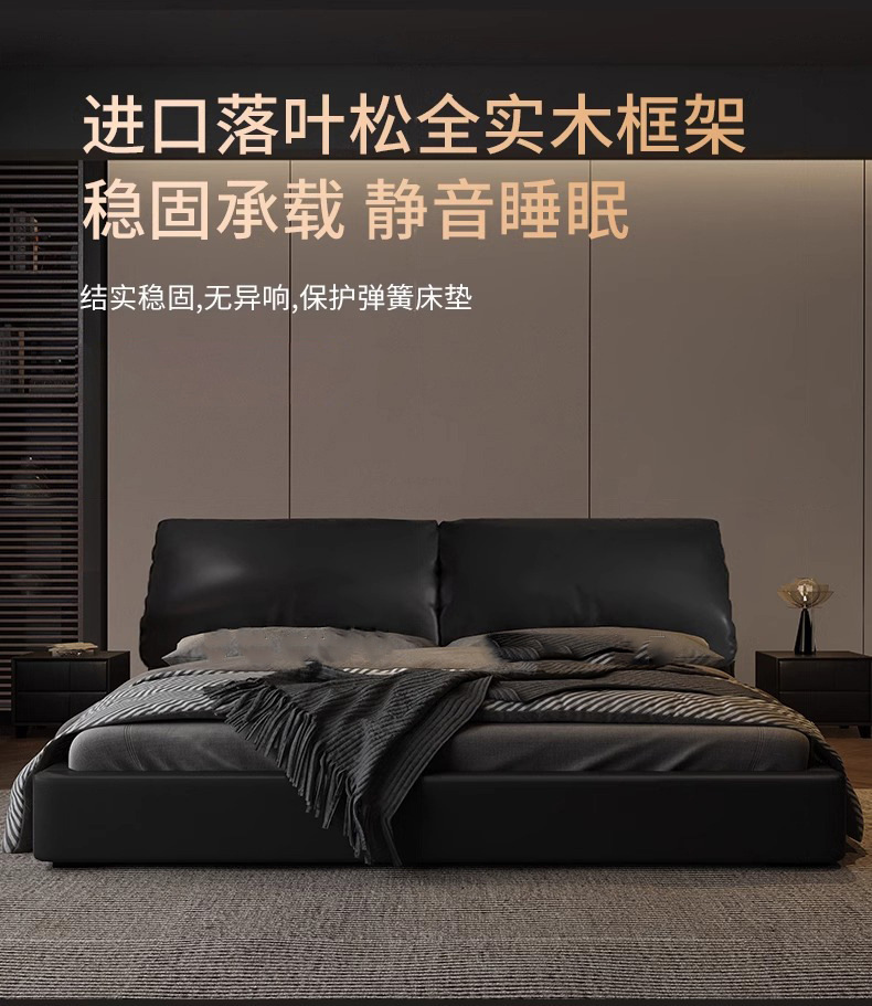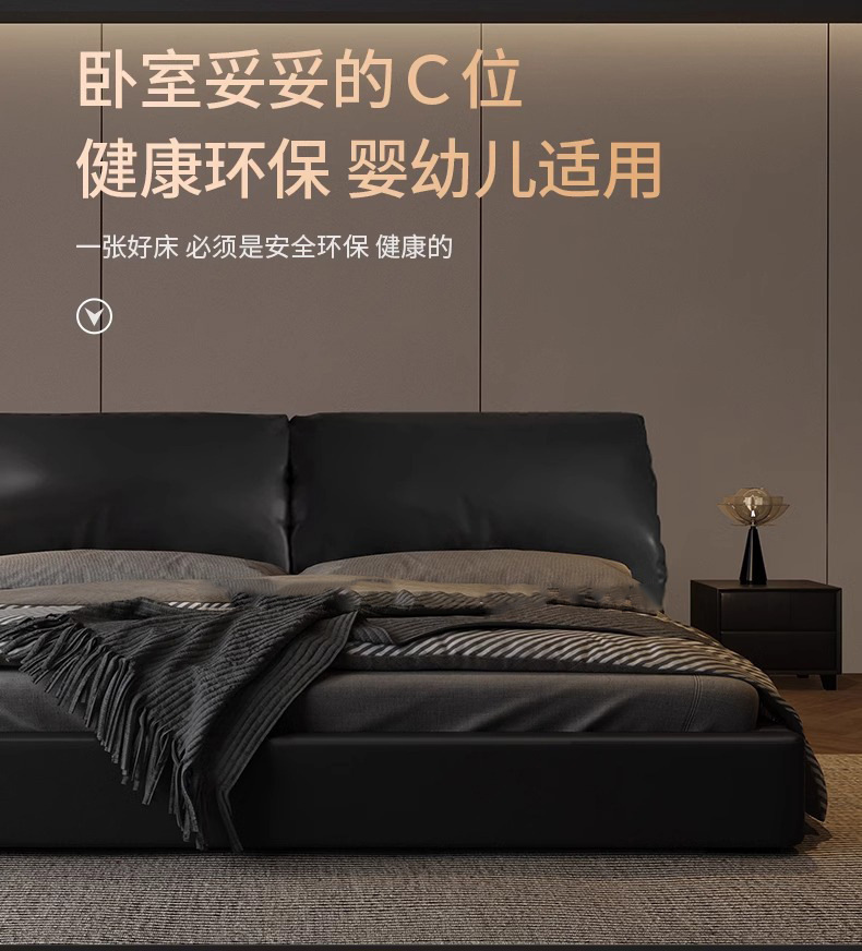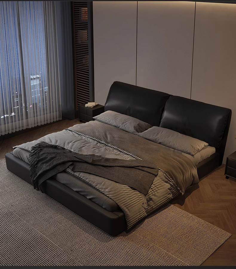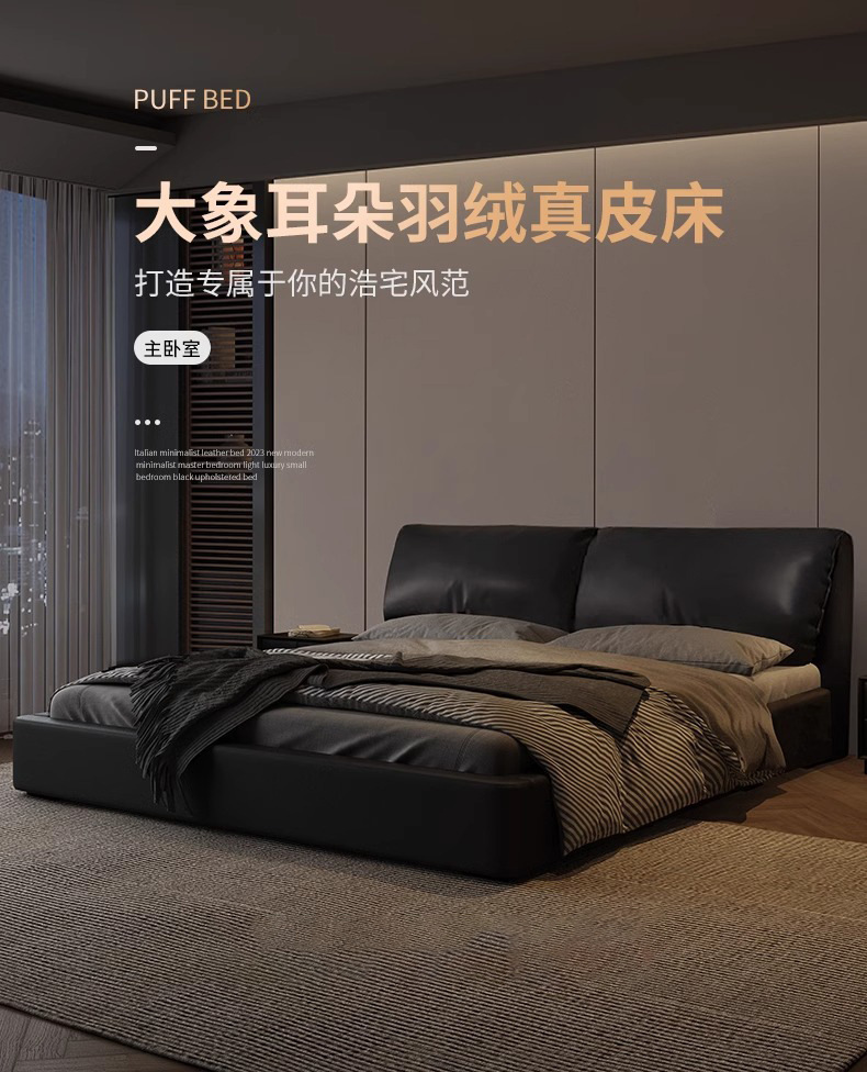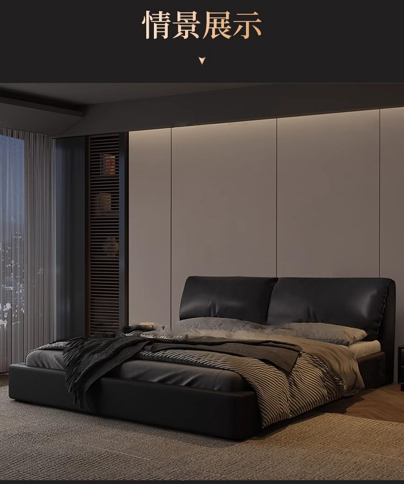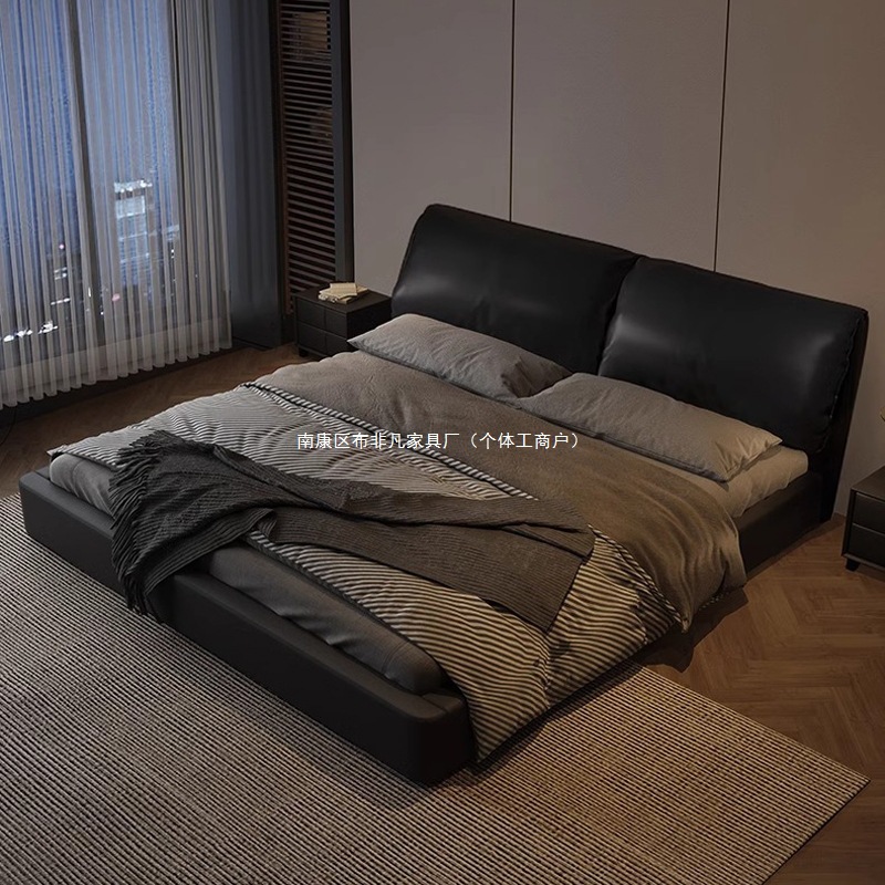 이탈리아 미니멀리스트 코끼리 귀 검은색 가죽 침대 바닥형 마스터 침실 고급스럽고 분위기 있는 더블 소프트백 웨딩 침대스토어 가기
