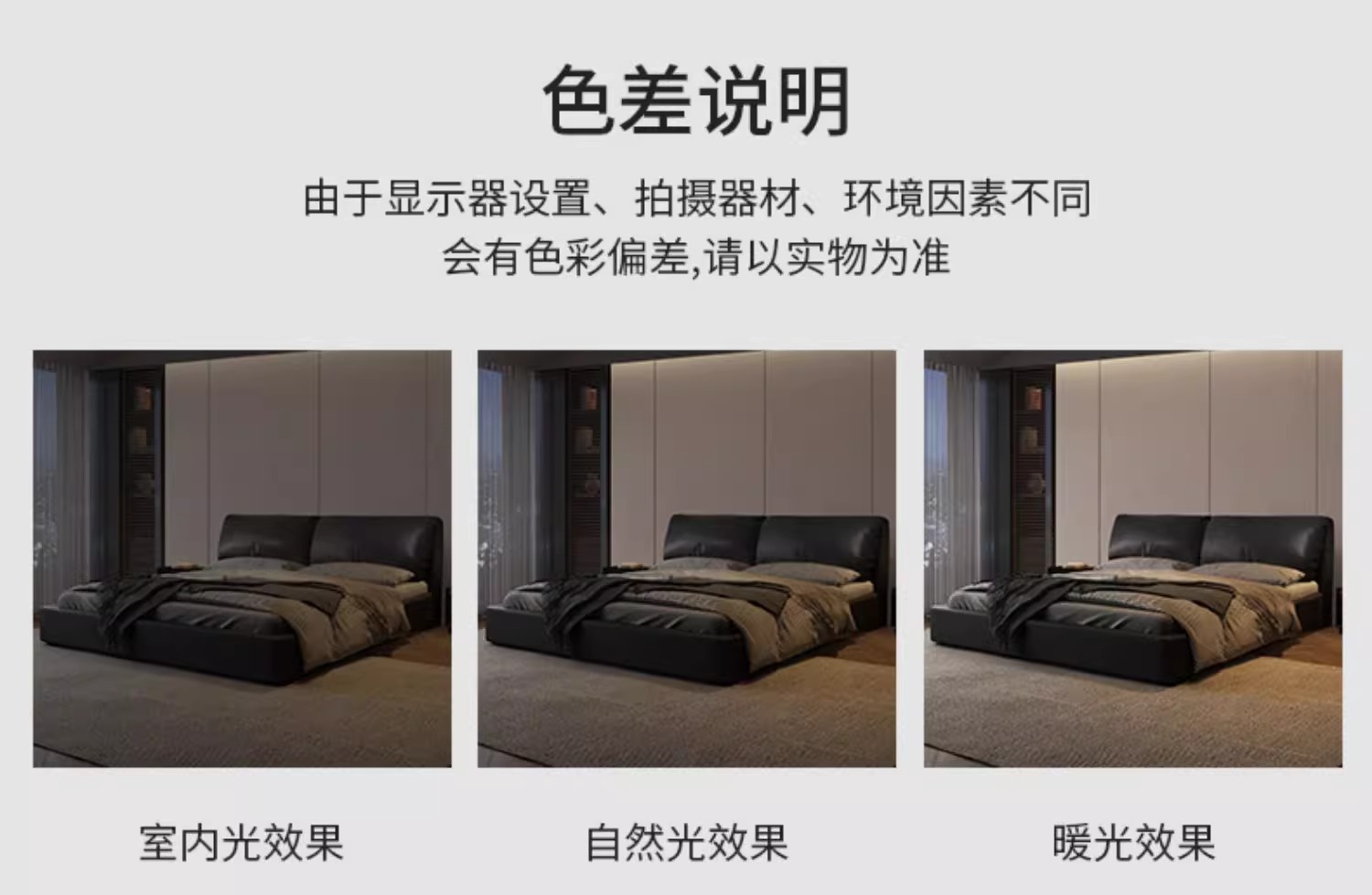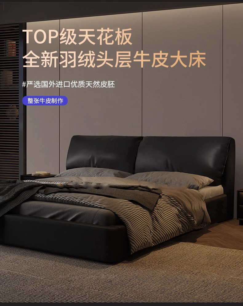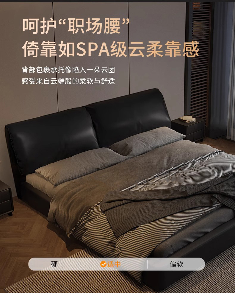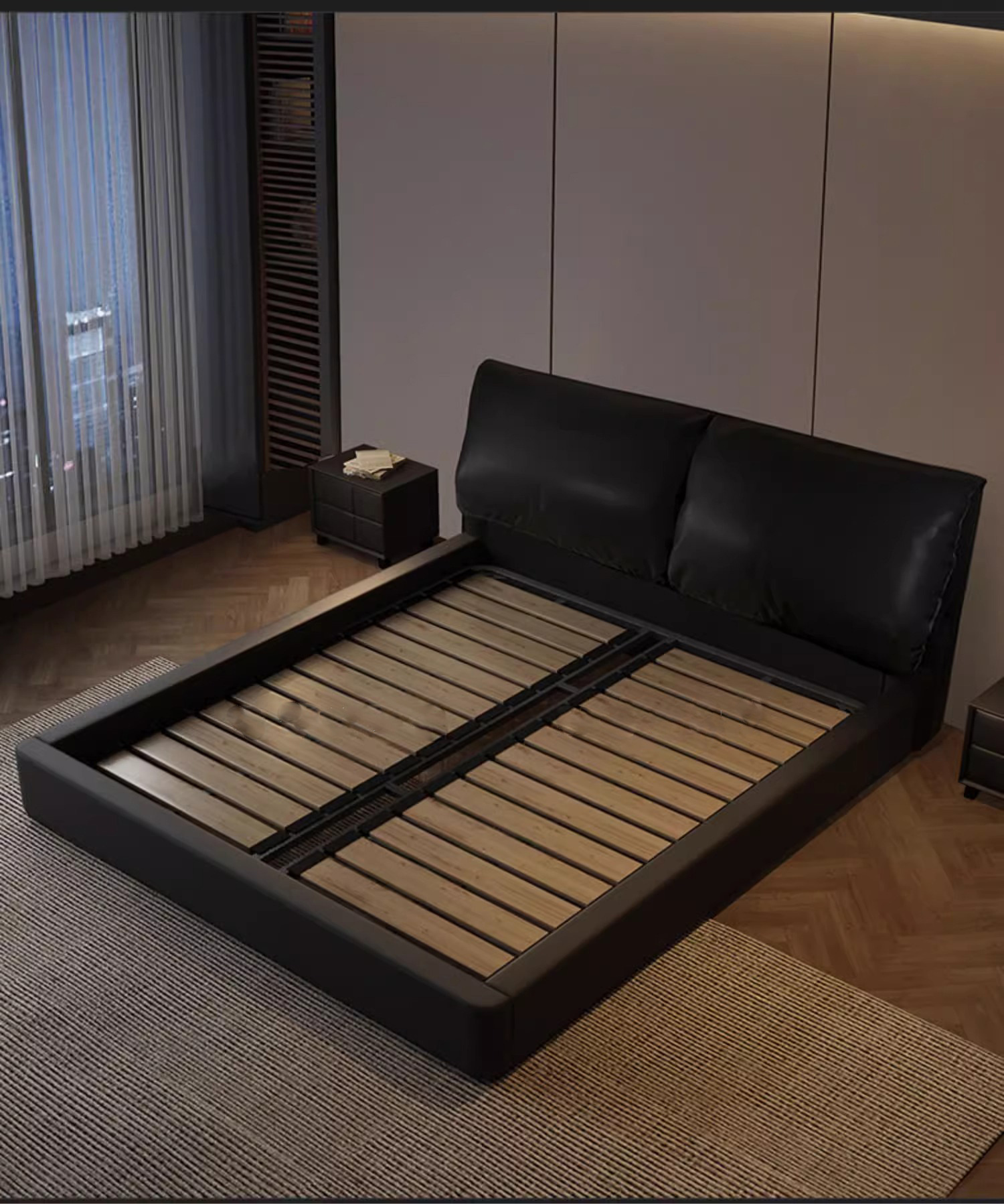 이탈리아 미니멀리스트 코끼리 귀 검은색 가죽 침대 바닥형 마스터 침실 고급스럽고 분위기 있는 더블 소프트백 웨딩 침대스토어 가기
