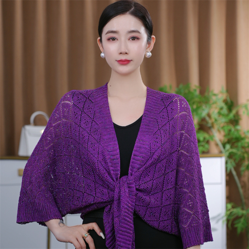 새로운 한국식 여름 에어컨 이불 숄, 패셔너블하고 다재다능하며 밝고 화려한 니트 아우터, 반짝이는 중공 노란색과 흰색 같은 스타일