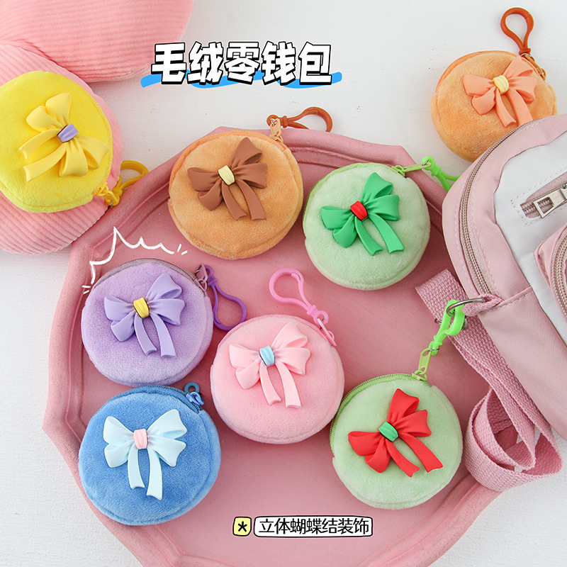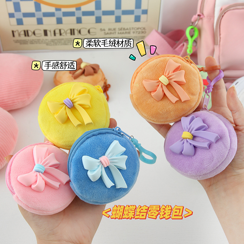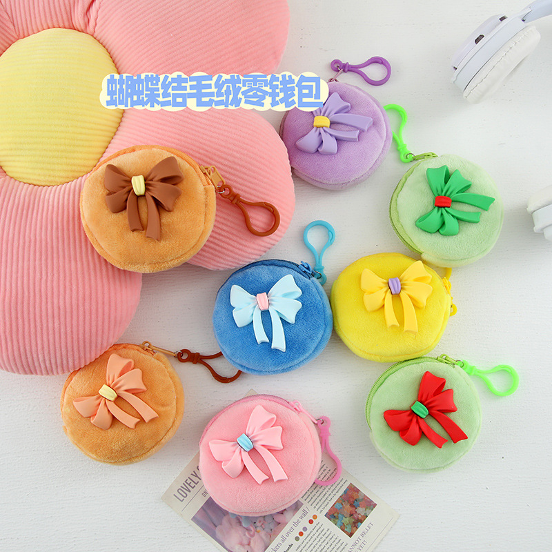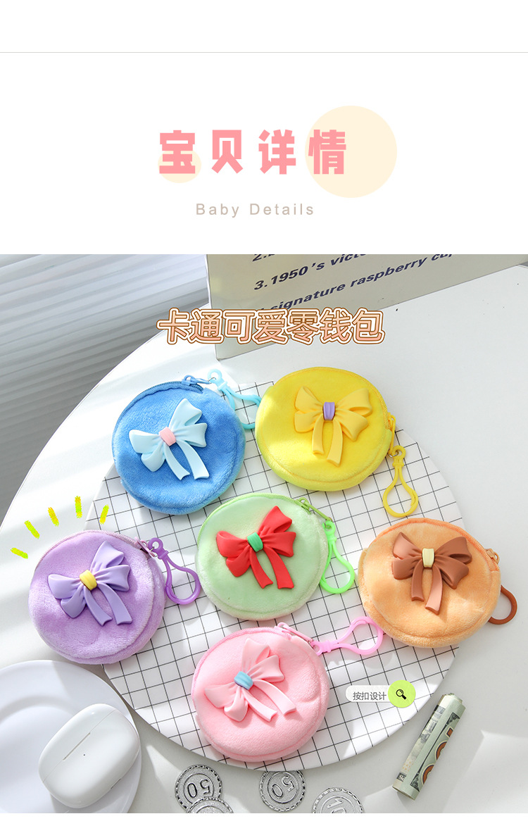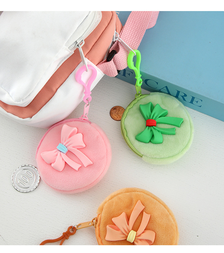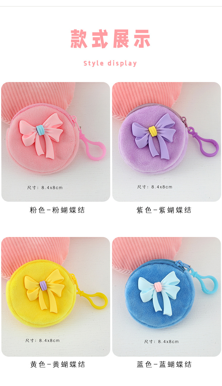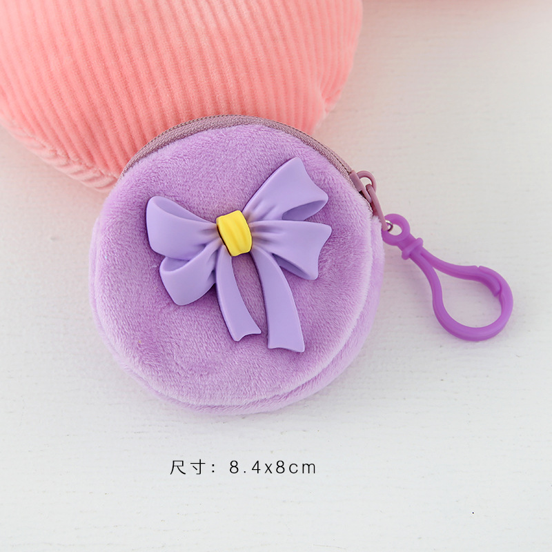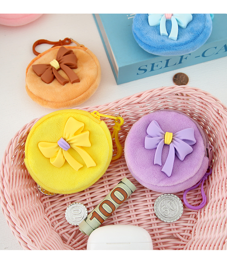 만화 플러시 동전 지갑 소녀 하트 보우 휴대용 헤드폰 보관 가방 어린이 귀여운 동전 지갑