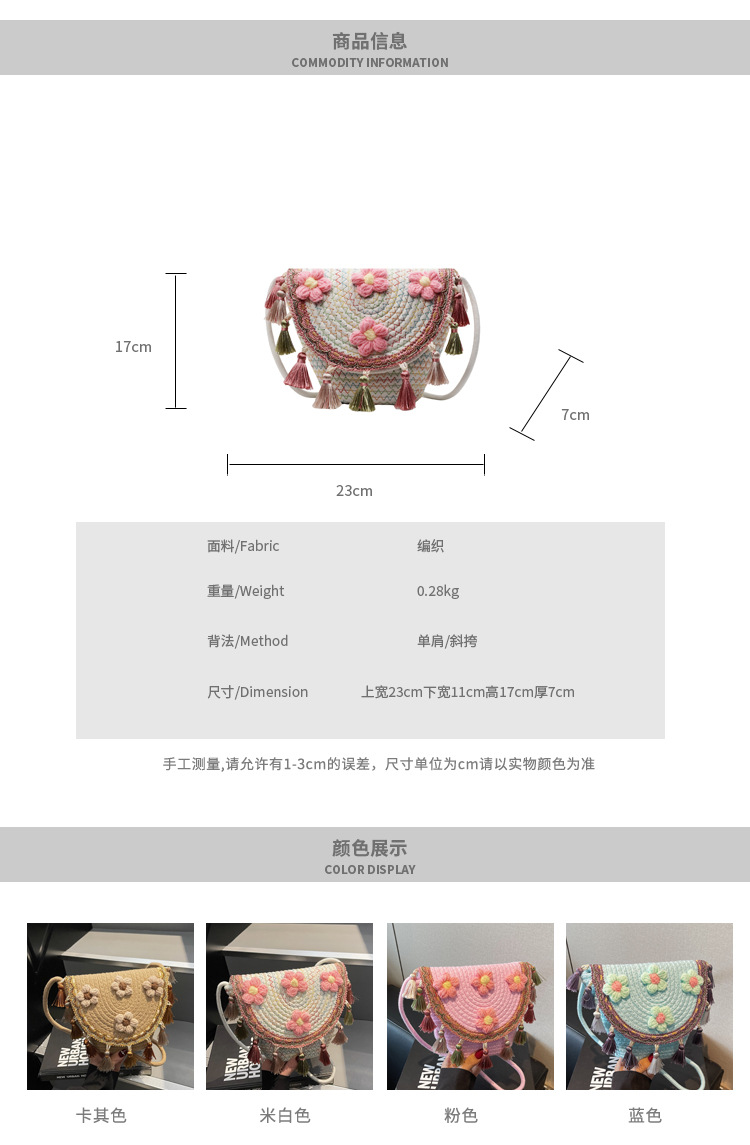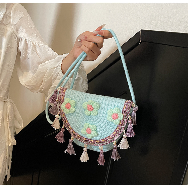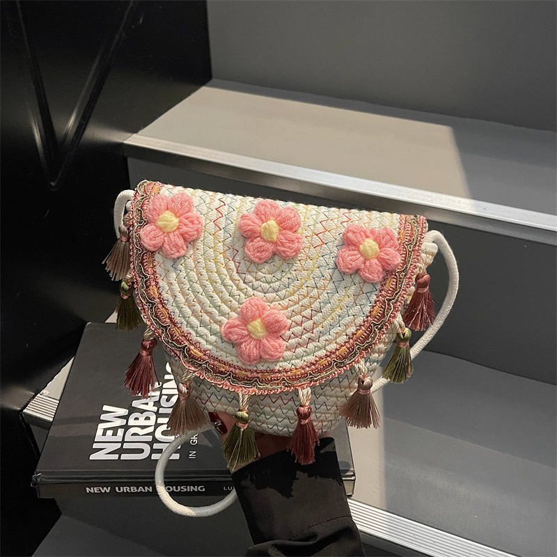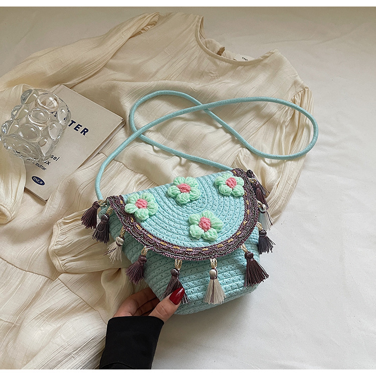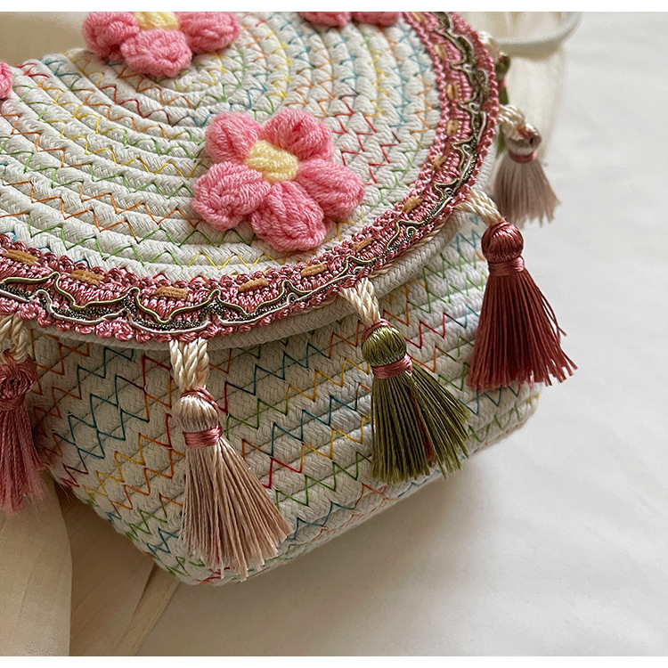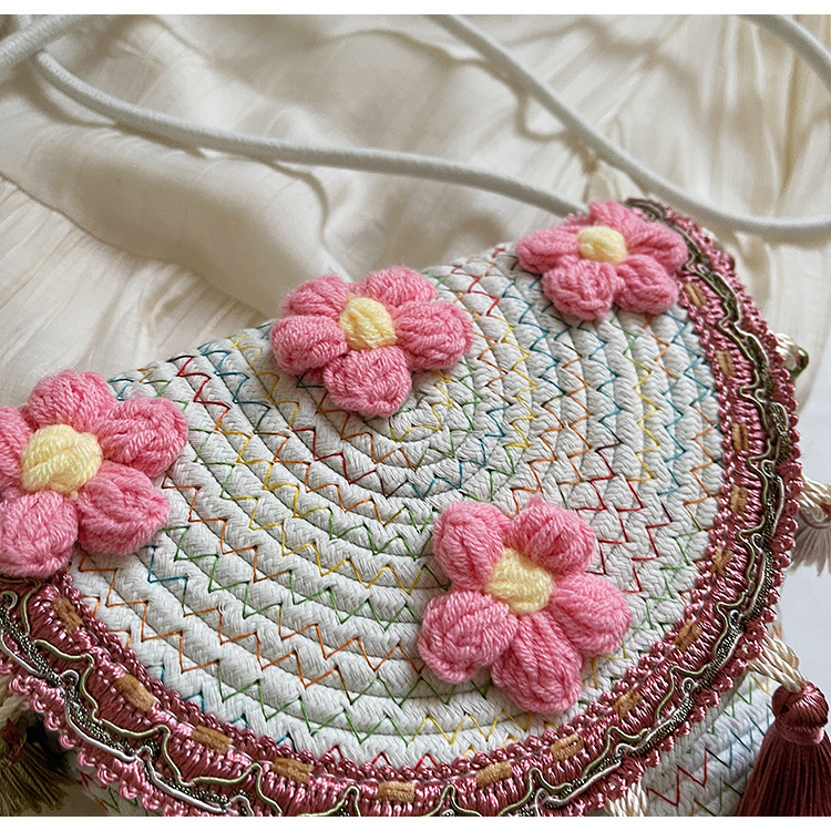 아름다운 꽃 수제 태슬 직조 에스닉 스타일 밀짚 패션 숄더백 작은 버킷 비치 휴가 크로스백