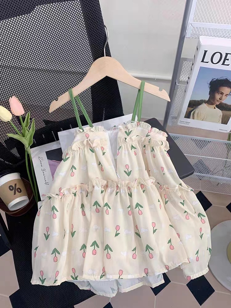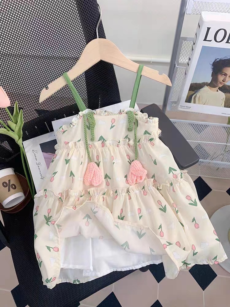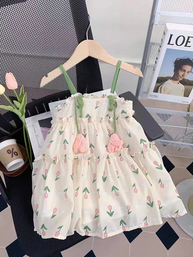 여자 여름 드레스 2025 새로운 유행 어린이 공주 드레스 아기 쉬폰 서스펜더 스커트 얇은스토어 가기