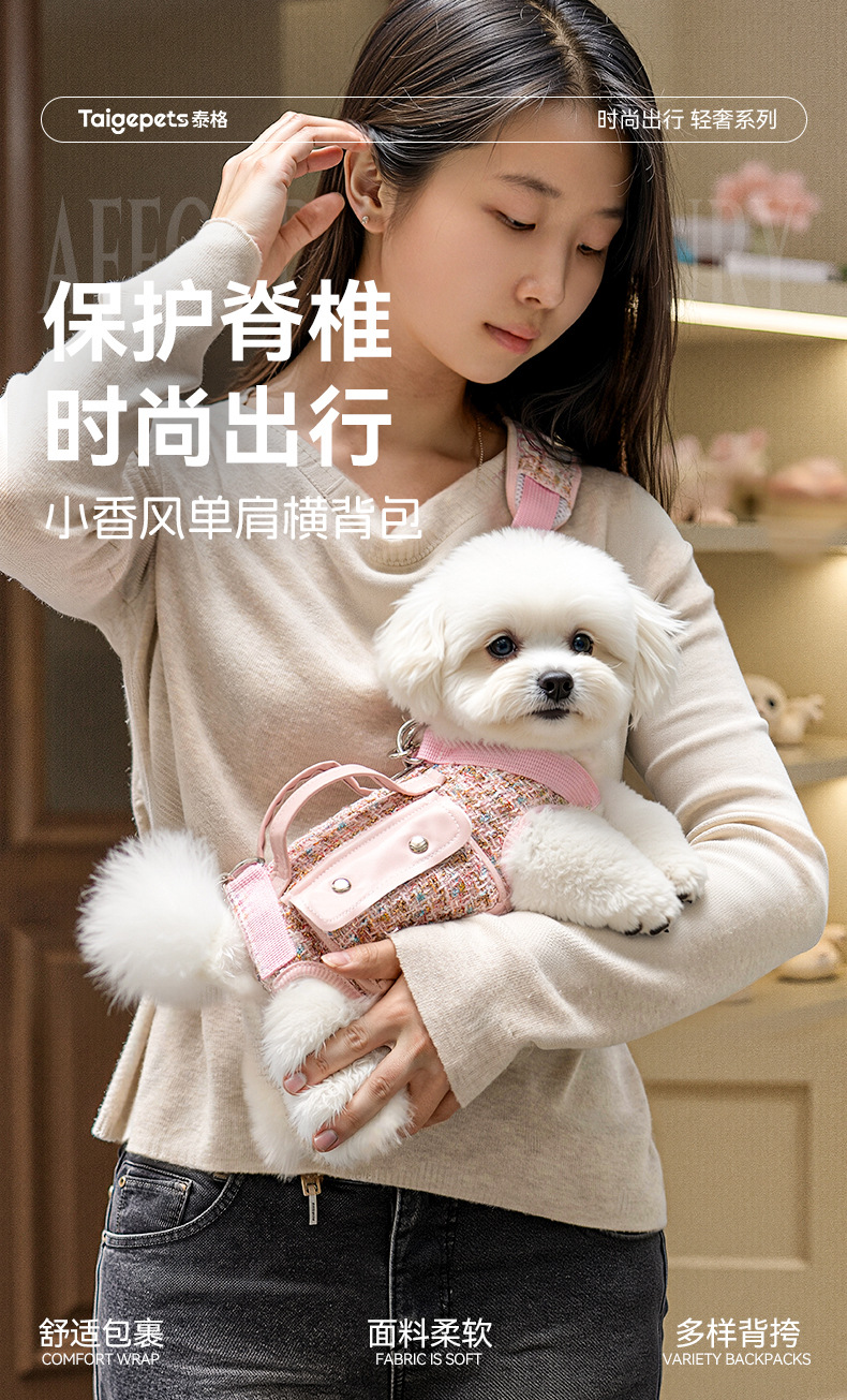 Xiaoxiangfeng 개 외출 가방 개 가로 배낭 휴대용 외출 경량 강아지 어깨 크로스 바디 백 작은 개 크로스 보더스토어 가기