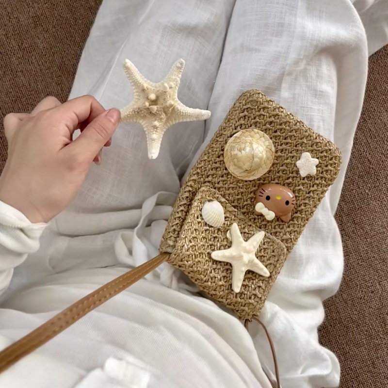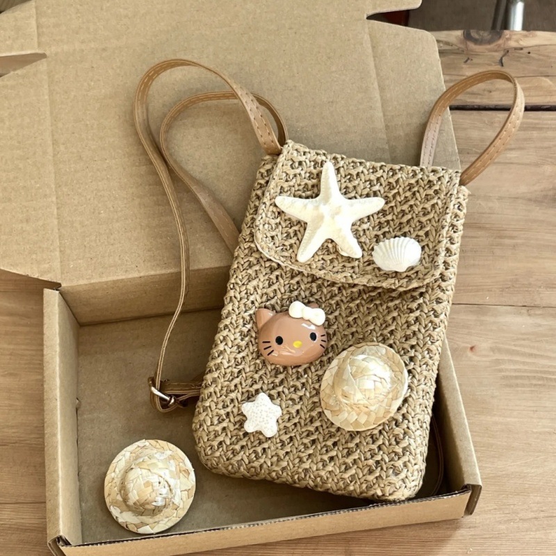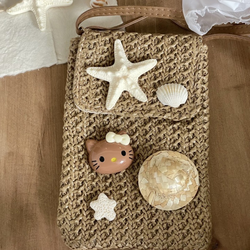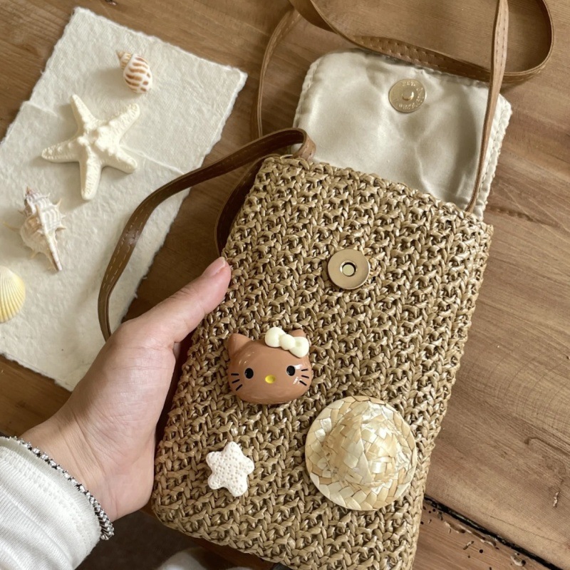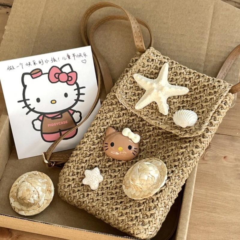 귀여운 쉘 헬로 키티 짠 휴대 전화 가방 여름 검은 가죽 kt 고양이 크로스 바디 백 해변 안경 카메라 가방스토어 가기