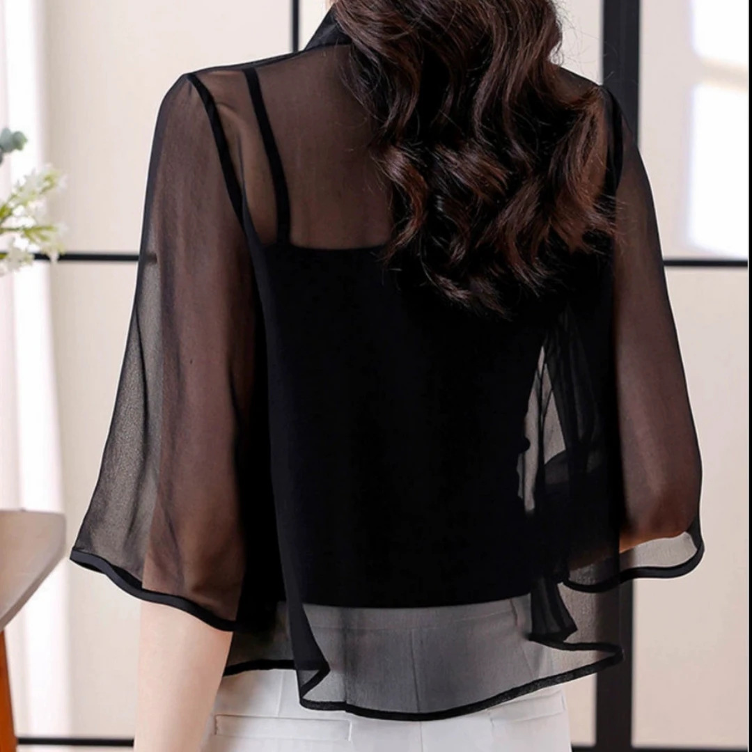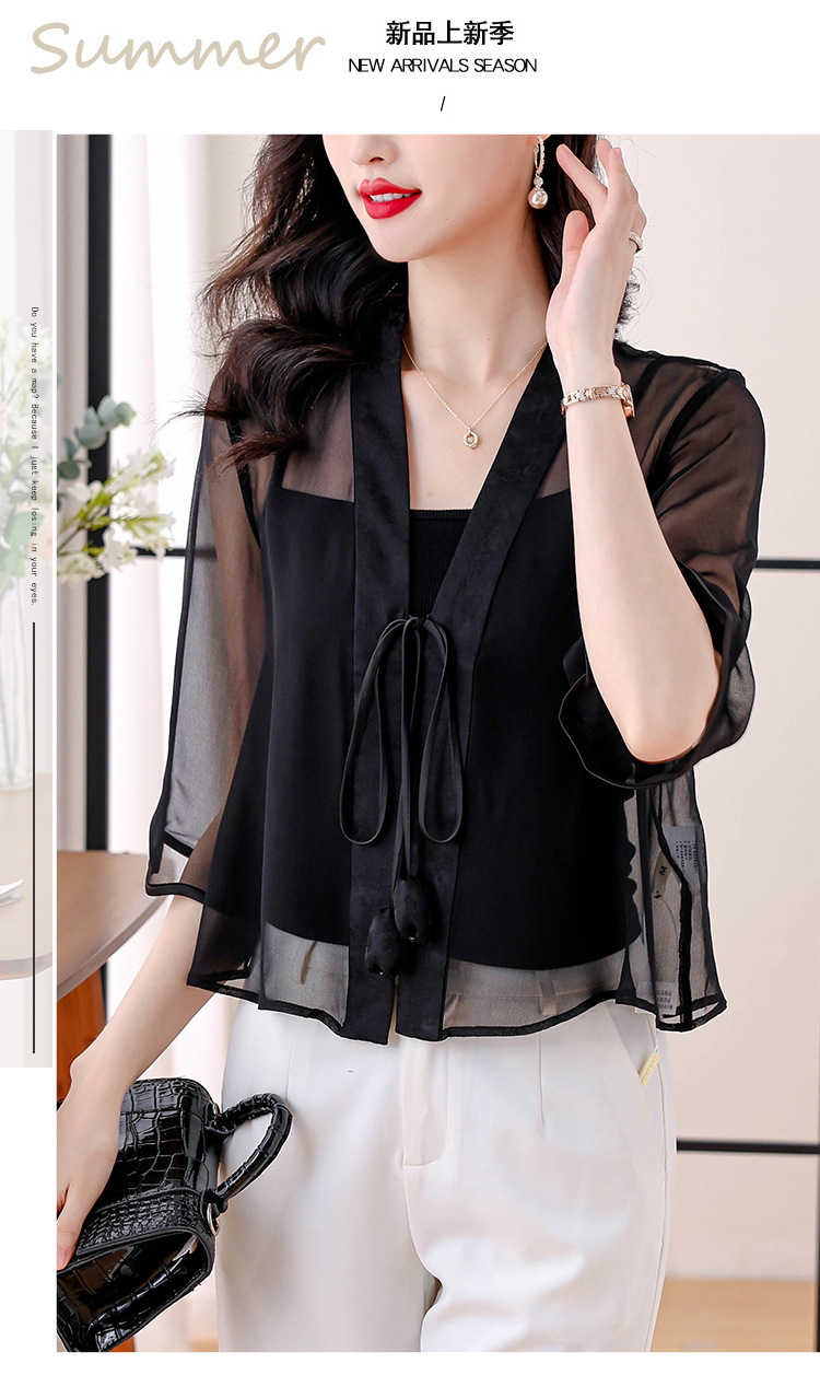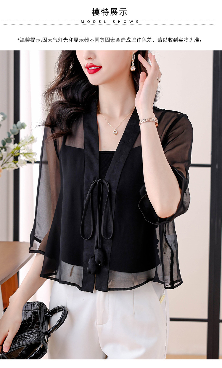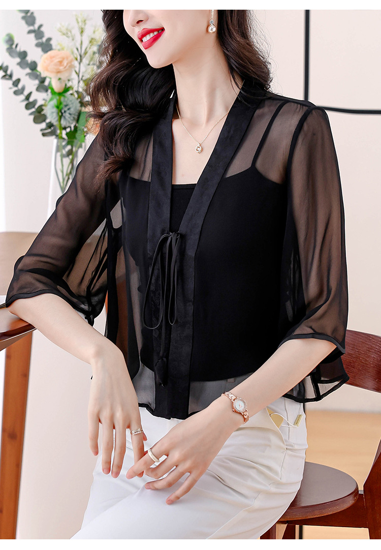 공장에서 직접 공급, 여성용 솔리드 컬러 자외선 차단 의류, 작은 숄, 고급스러운 외부 착용, 여성용 다용도 진주 쉬폰 셔츠