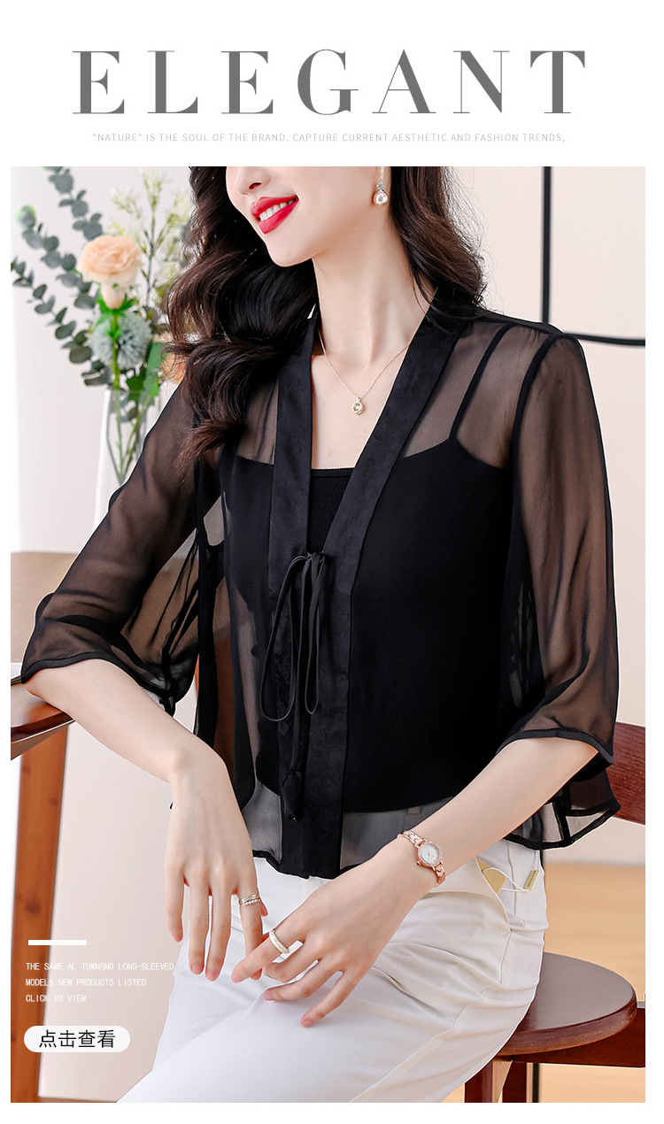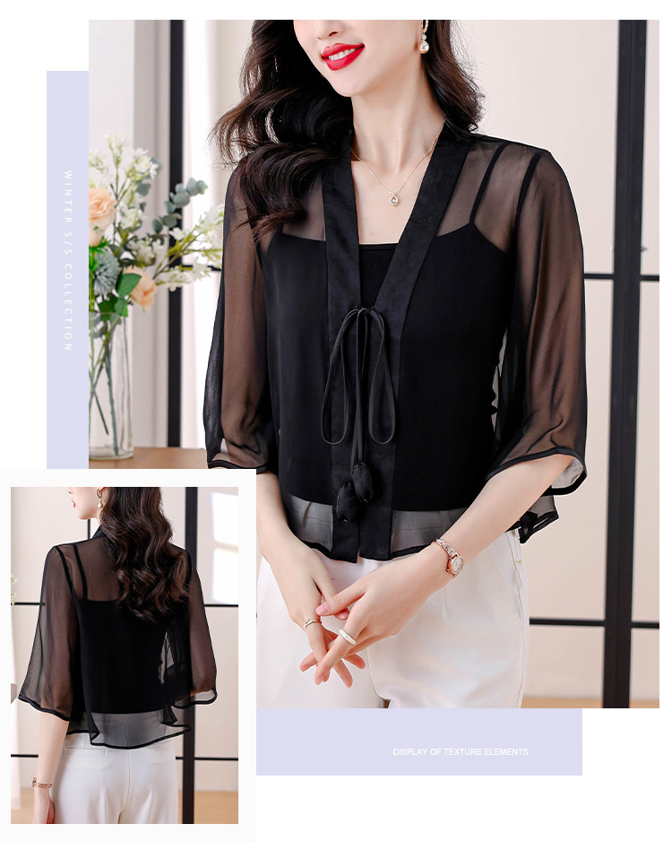 공장에서 직접 공급, 여성용 솔리드 컬러 자외선 차단 의류, 작은 숄, 고급스러운 외부 착용, 여성용 다용도 진주 쉬폰 셔츠스토어 가기