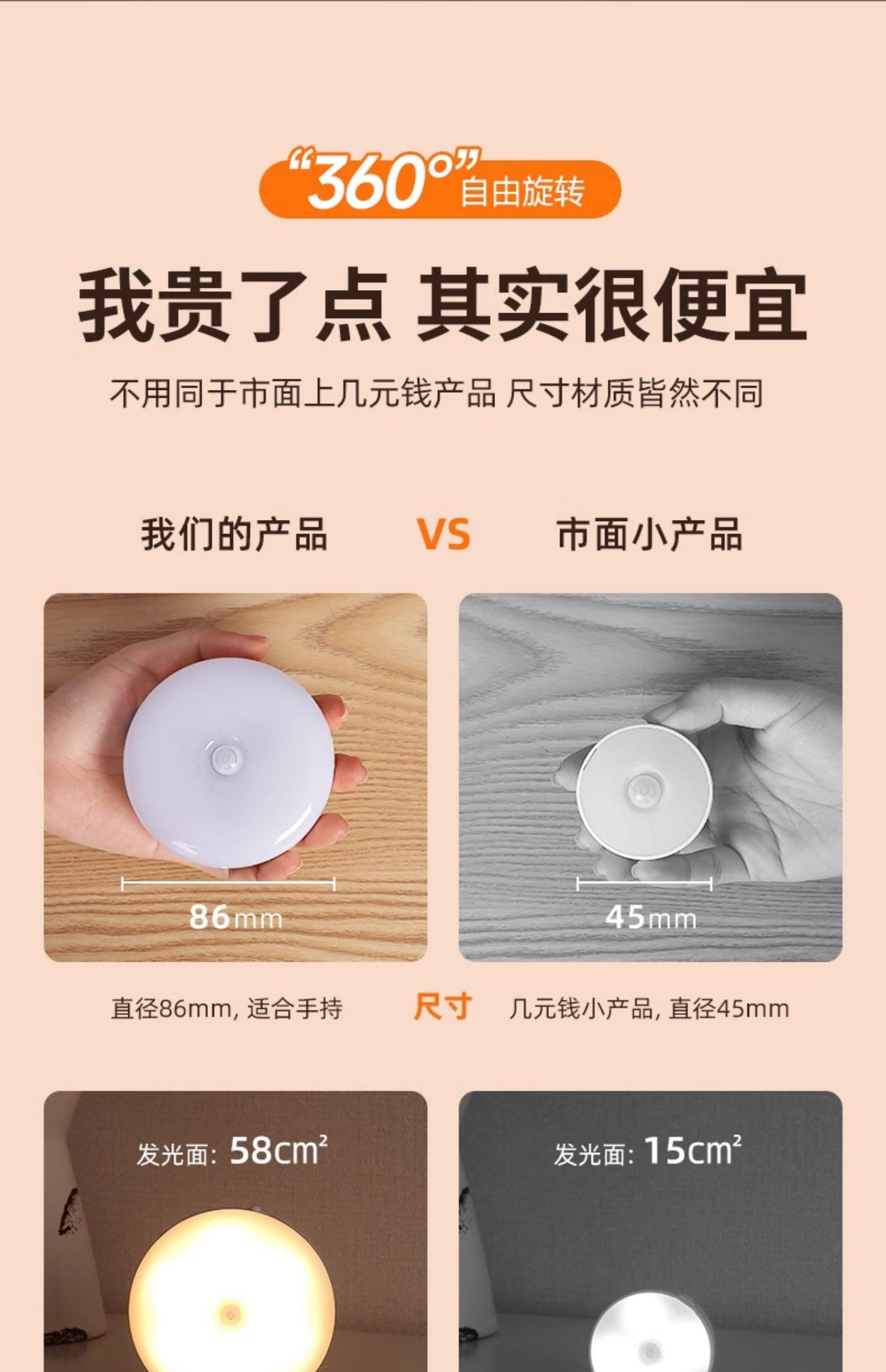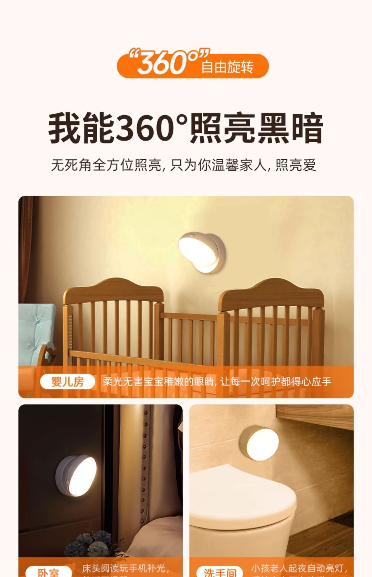 무선 인체 센서 야간 조명 인터넷 연예인 야간 가정용 통로 복도 침대 옆 침실 수면 음성 제어 충전식스토어 가기