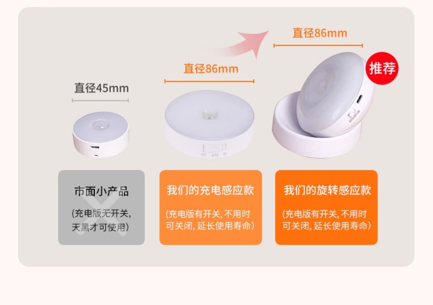 무선 인체 센서 야간 조명 인터넷 연예인 야간 가정용 통로 복도 침대 옆 침실 수면 음성 제어 충전식
