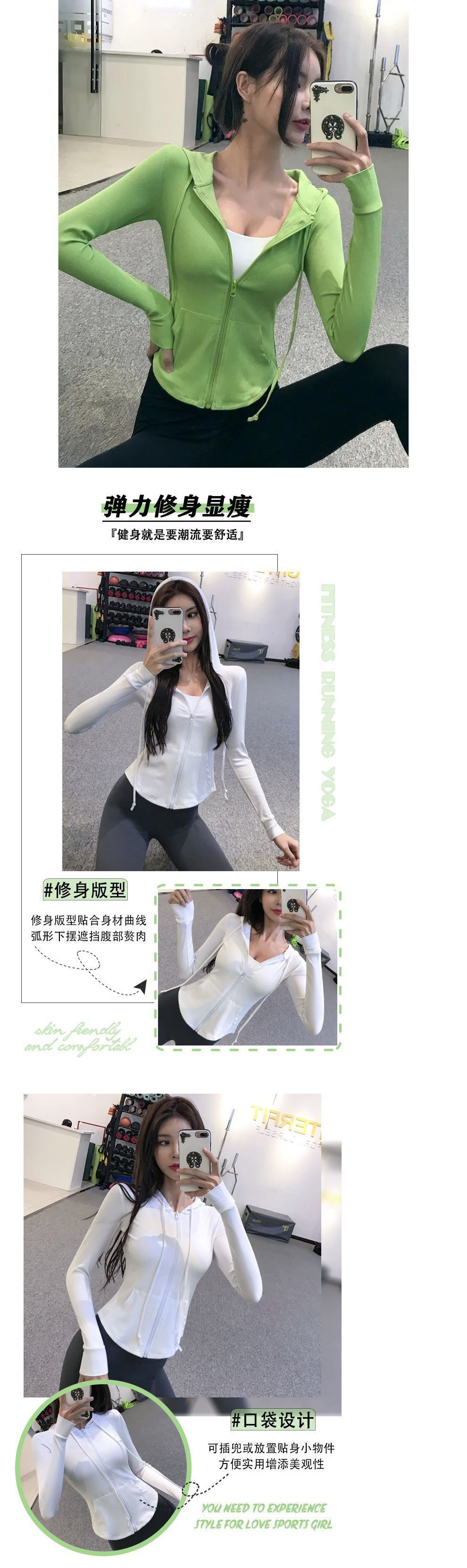 피트니스 소녀 후드 지퍼 스포츠 코트 캐주얼 봄, 가을 러닝 긴팔 요가 탑 타이트 자켓 New스토어 가기