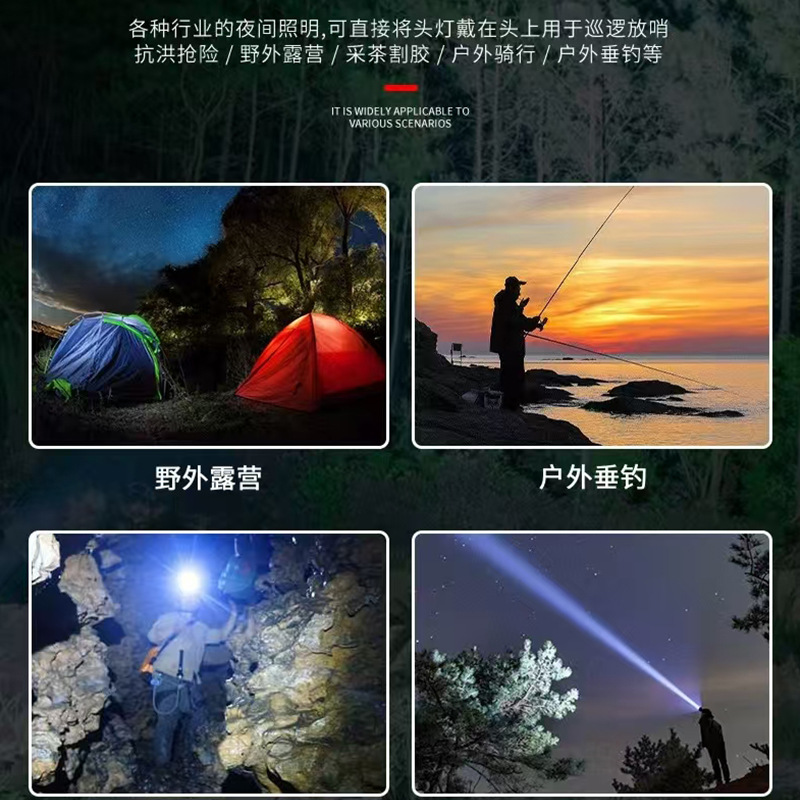 텔레스코픽 줌 헤드라이트, 강한 빛 충전, 매우 밝은 헤드 장착형 손전등, 야간 낚시 조명, 야외용 매우 긴 배터리 수명의 광부용 램프