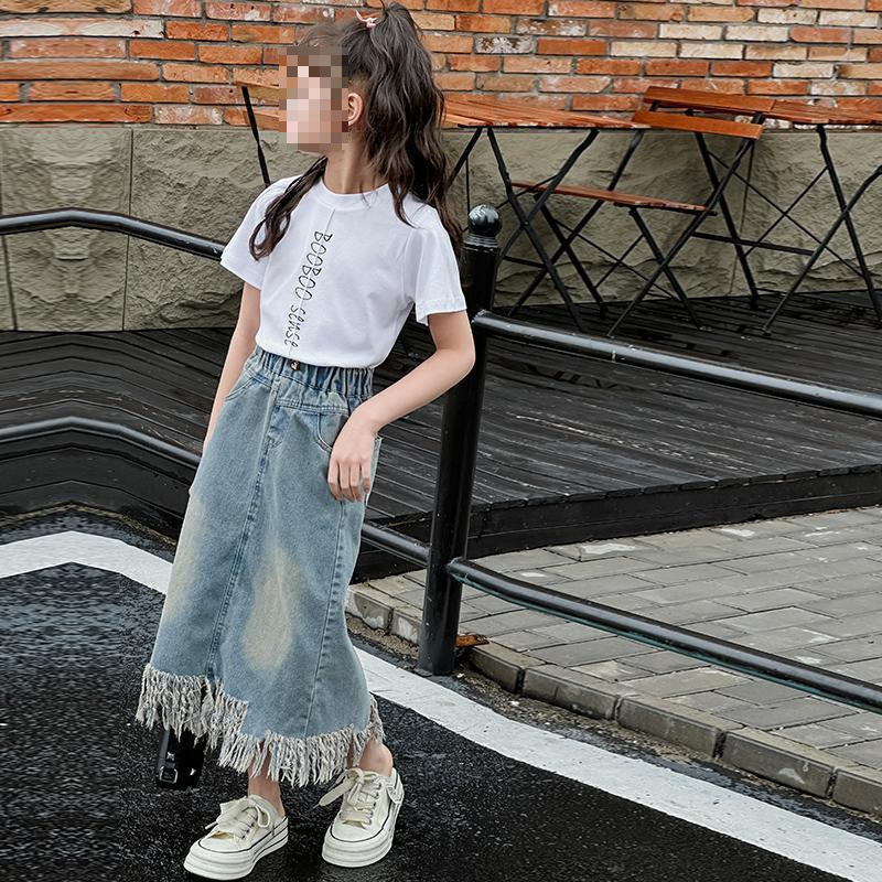 여아 데님 스커트 여름 2025 새로운 한국식 중대형 아동 패션 스커트 서양식 아동 여름 스커트스토어 가기