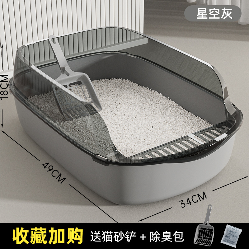 반밀폐형 고양이 쓰레기통, 초대형, 물 튀김 방지, 두꺼운 고양이 화장실, 애완동물 용품, 고양이 쓰레기통, 초대형, 탈취제