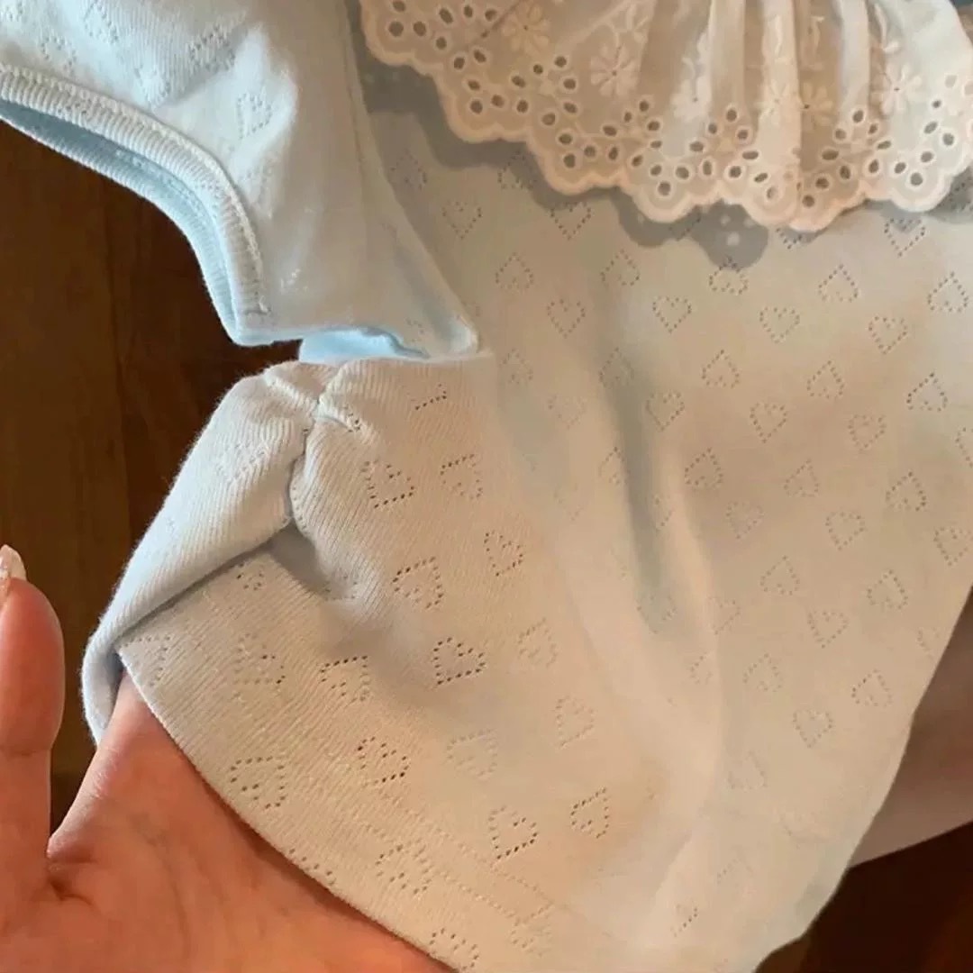 2025 새로운 여름 스타일 소녀 레이스 티셔츠 아기 소녀 옷깃 귀여운 반팔 탑 다재다능하고 트렌디 한스토어 가기