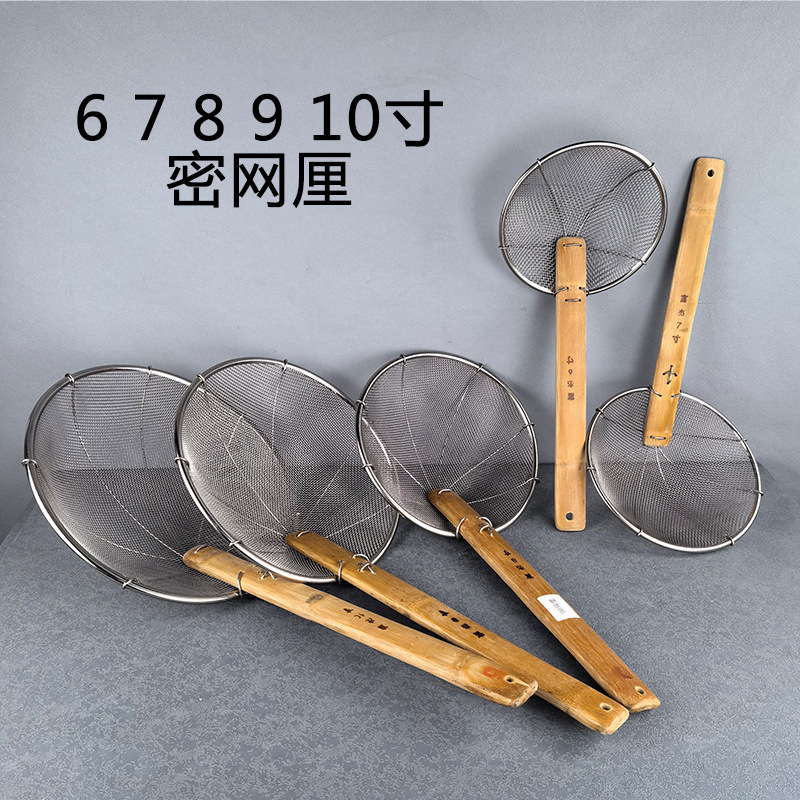 스테인리스 소쿠리, 대형 긴 대나무 손잡이, 초미세 필터 메쉬, 손으로 짠 튀김 스푼