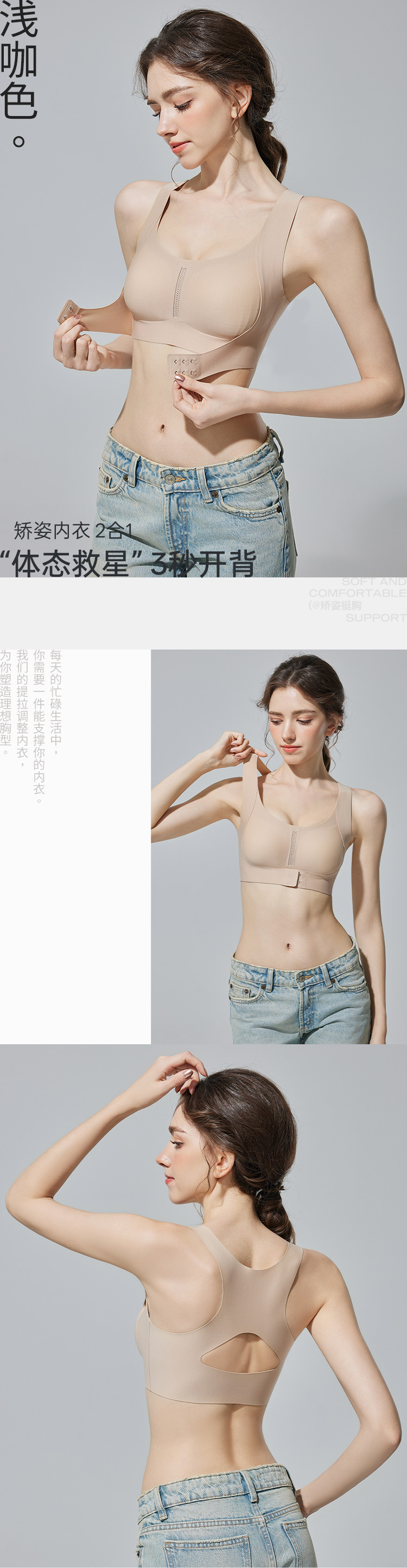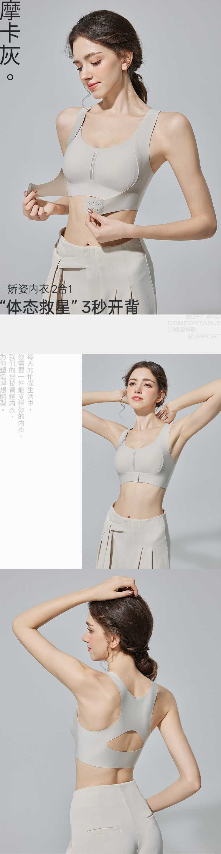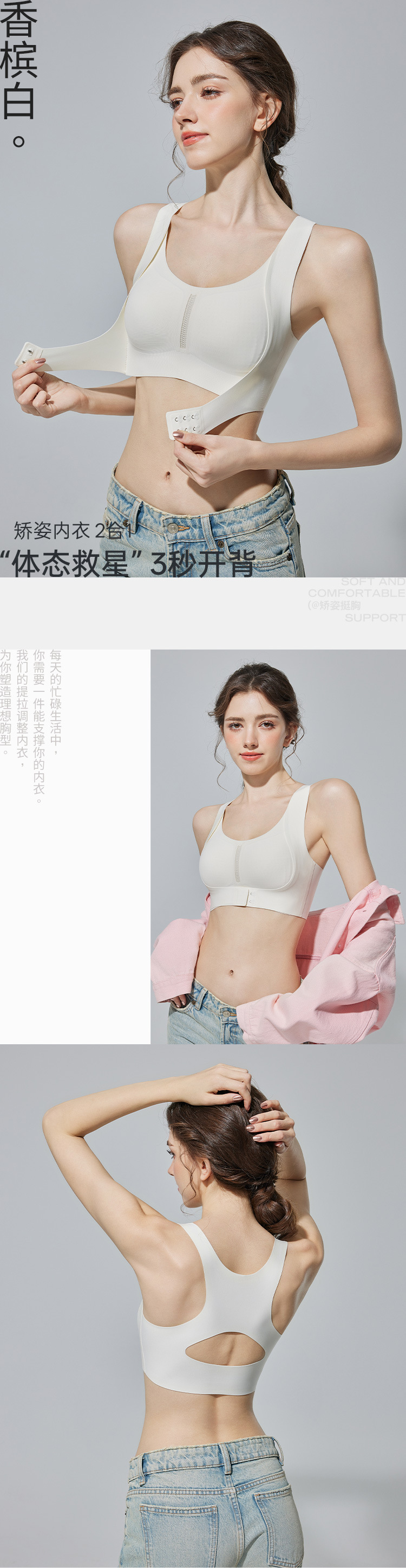 여성용 신형 자세교정 속옷, 앞버튼, 푸쉬업, 처짐방지, 척추교정, 오픈숄더, 쉐이핑, 심리스 스포츠브라
