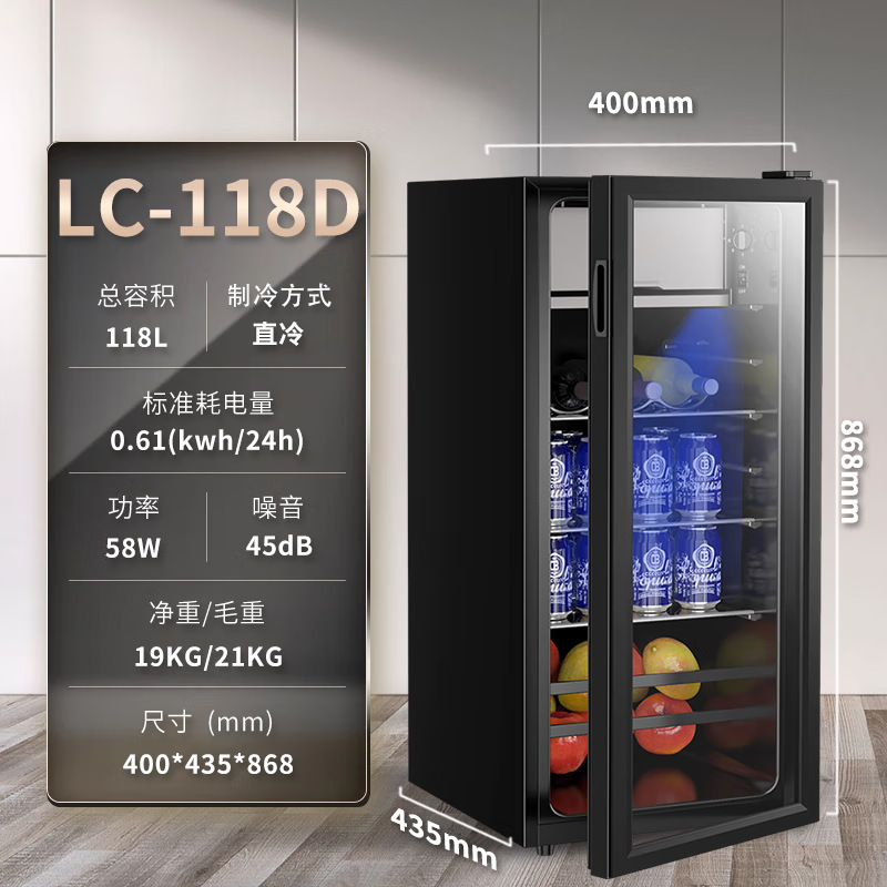 Chigo Ice Bar 가정용 소형 냉동고 냉장 및 신선 유지 상업용 사무실 차 음료 레드 와인 캐비닛 투명 냉장고