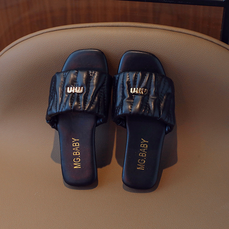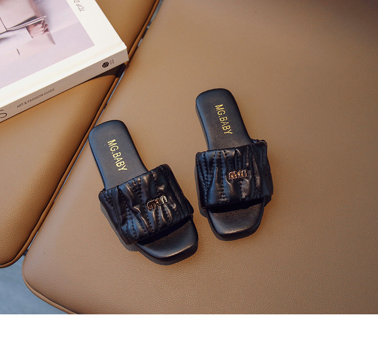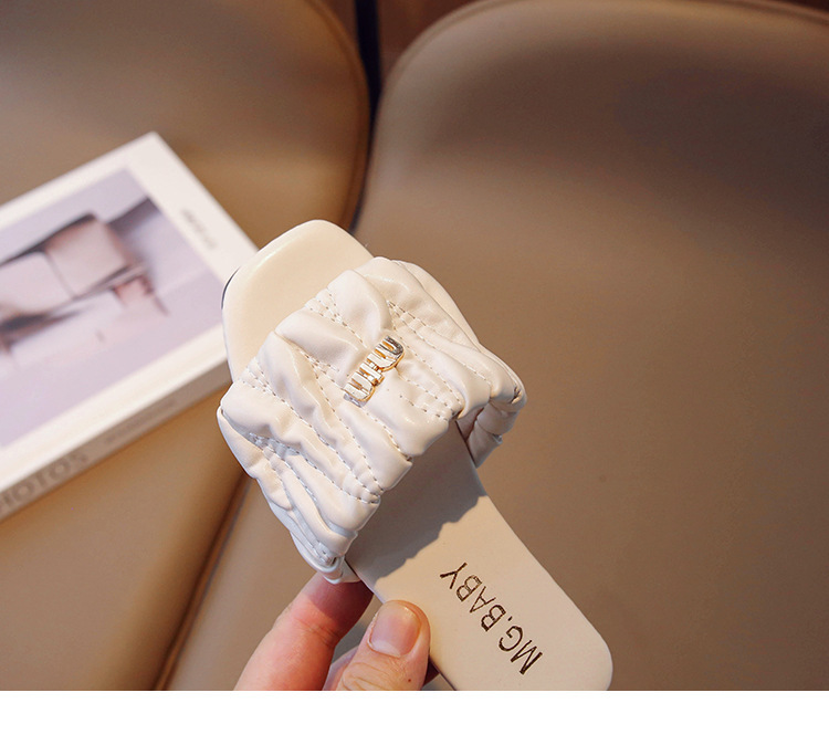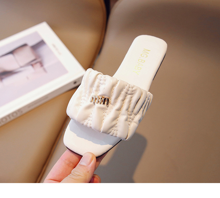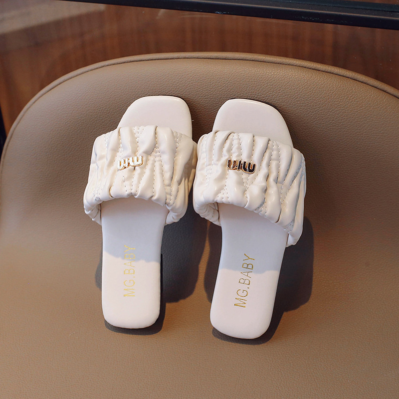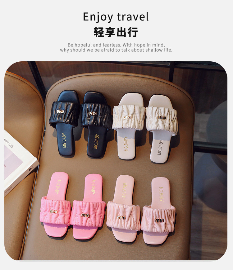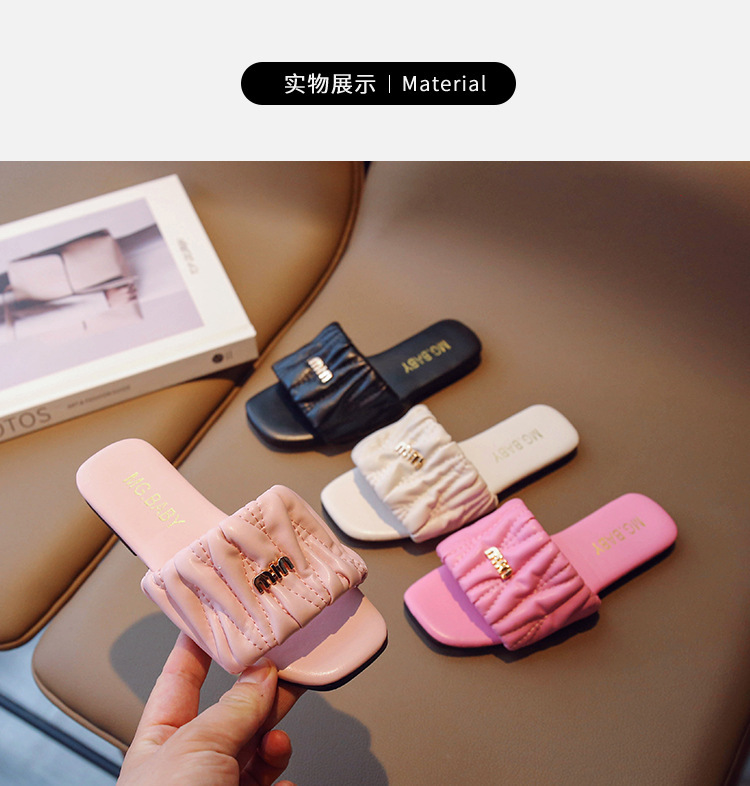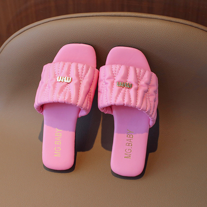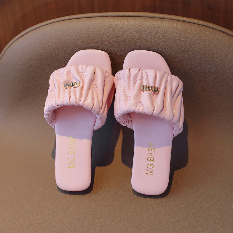 캔디 컬러 주름 사각 발가락 슬리퍼 소녀를위한 2024 여름 새로운 패션 편지 부드러운 바닥 어린이 캐주얼 슬리퍼