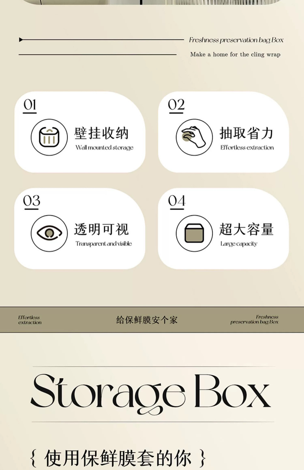 일회용 접착 필름 커버 보관 상자 이동식 벽걸이 형 가정용 주방 펀치없는 신선 유지 가방 커버 보관