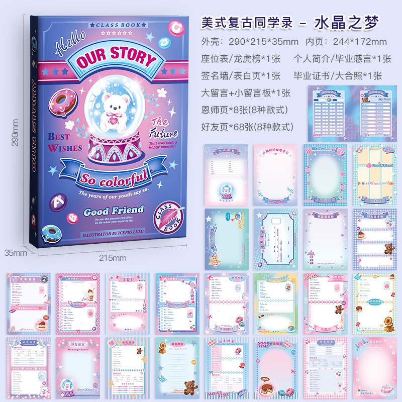 레트로 동급생 초등학생 6학년 졸업 성장 기념 앨범 2024 새로운 루스리프 중학교 고등학교스토어 가기