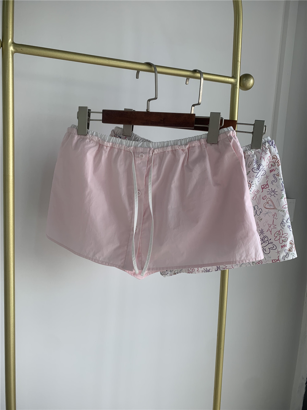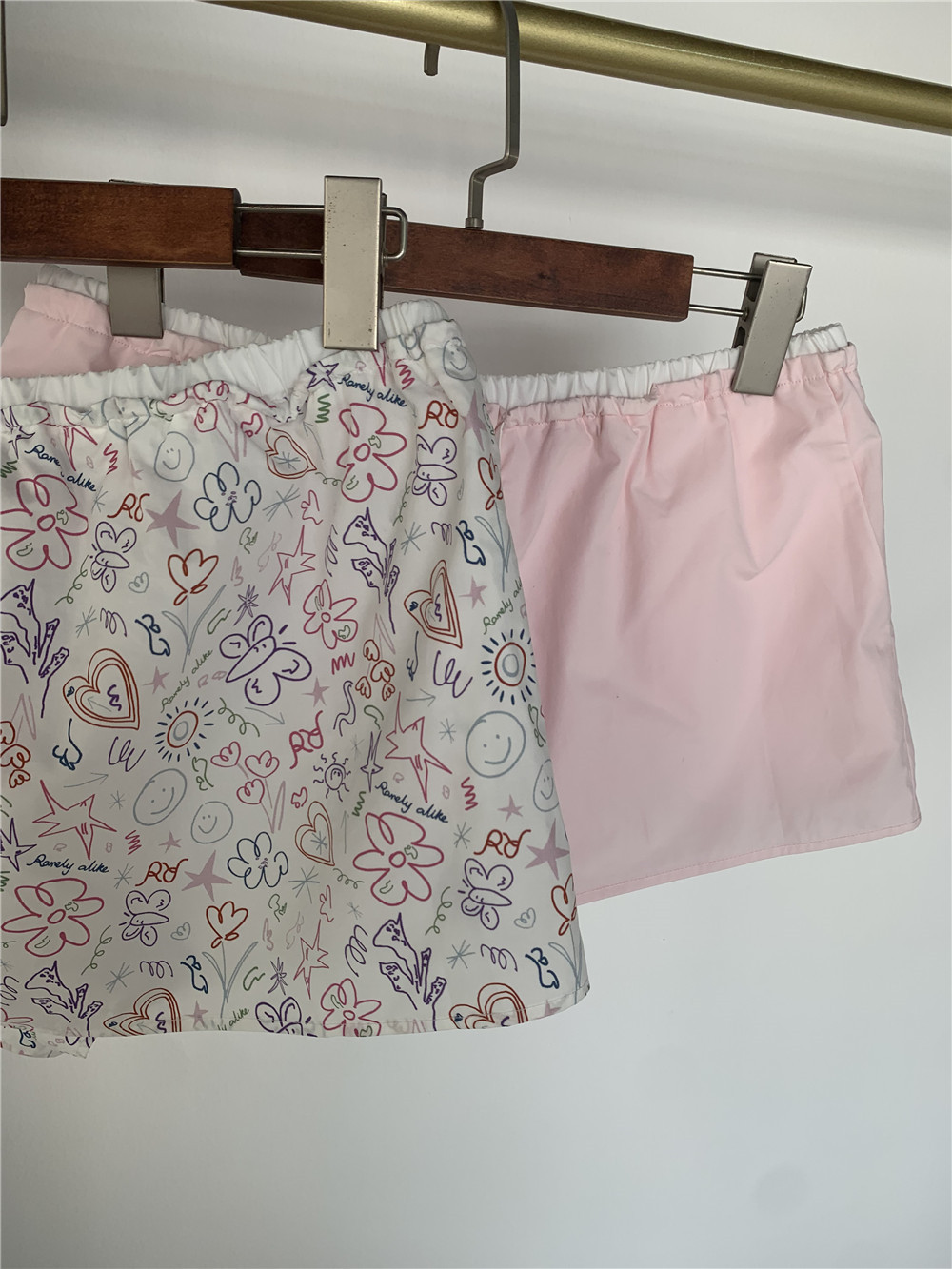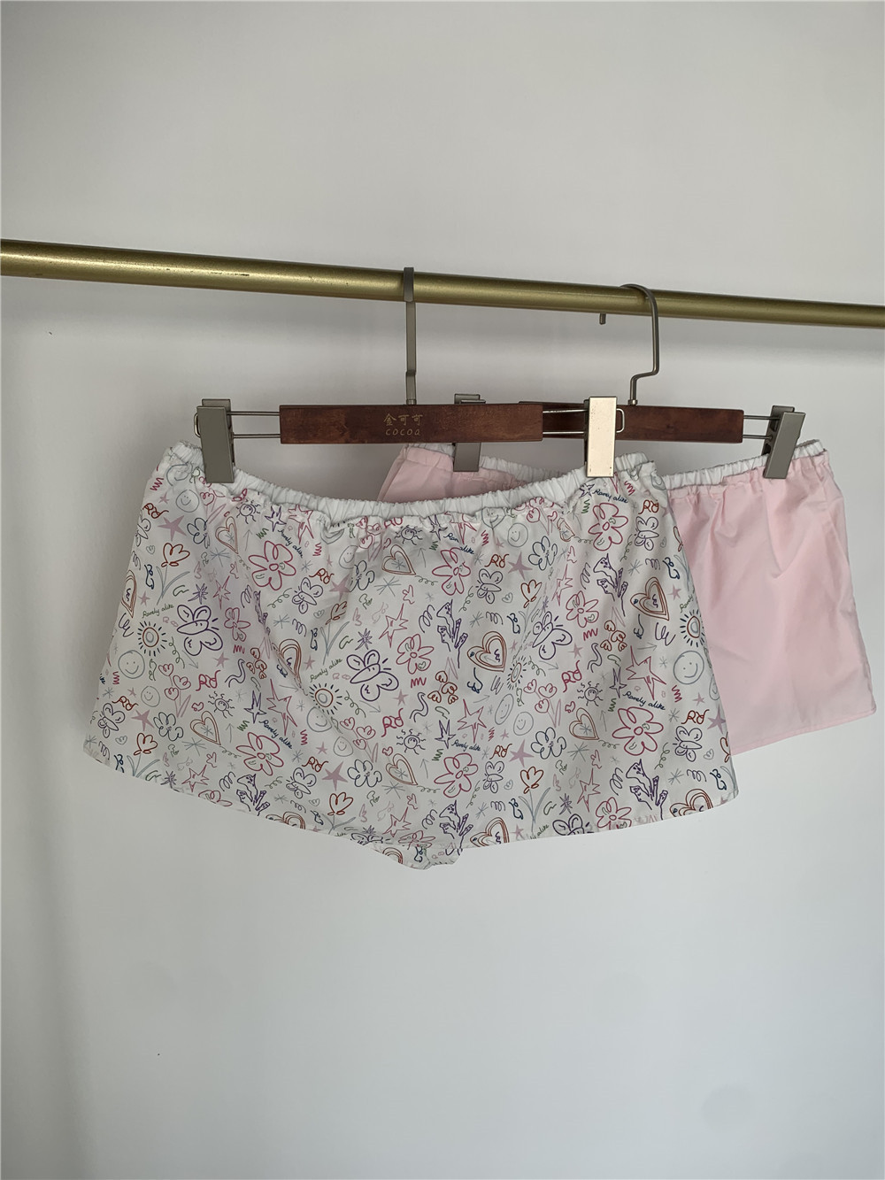 스팟 이지 스트랩 셔츠 미니 퀼로트 신축성 있는 허리 로우 웨이스트 반바지 스커트 여성용 라이트 핑크/그래피 프린트