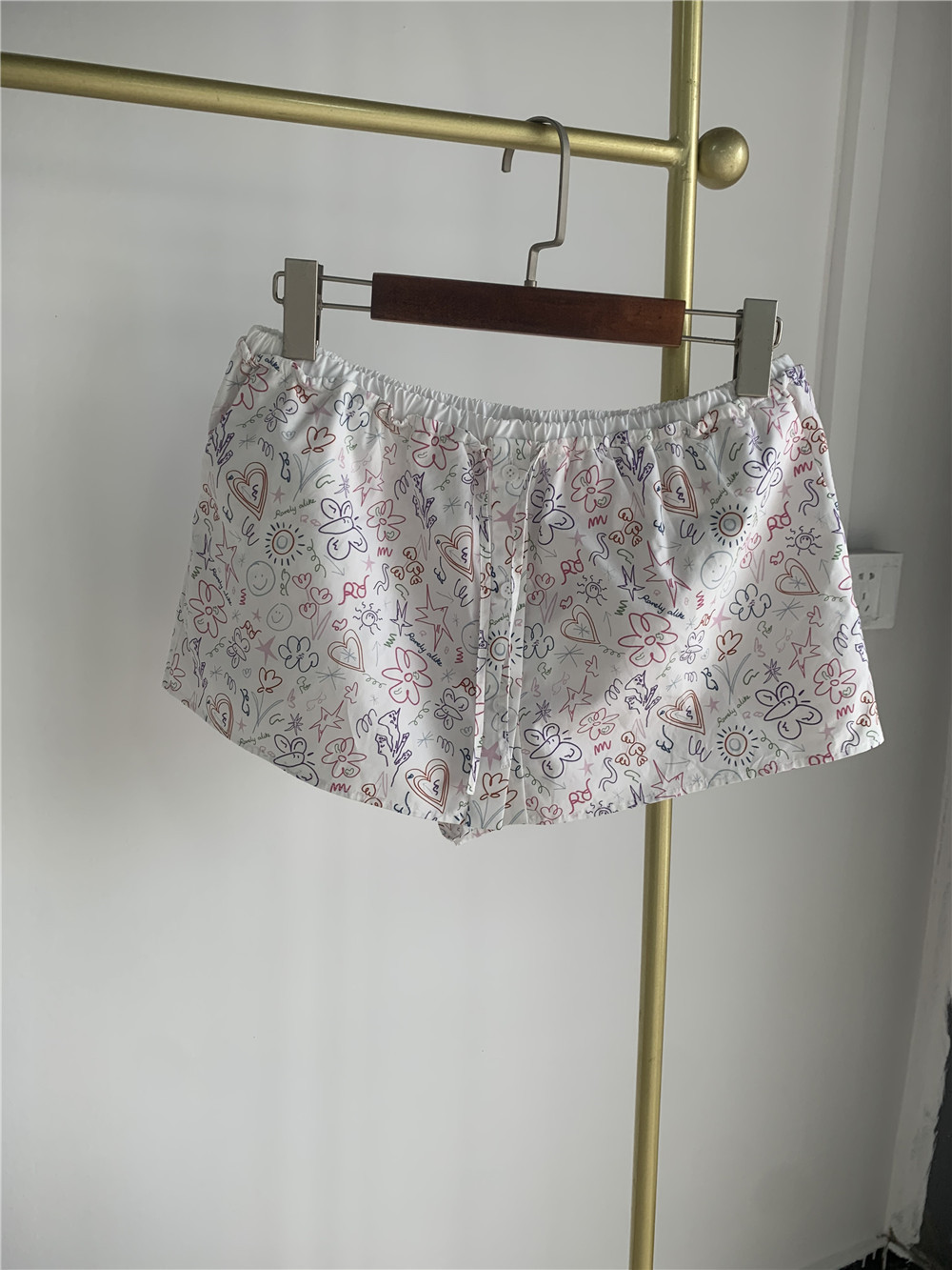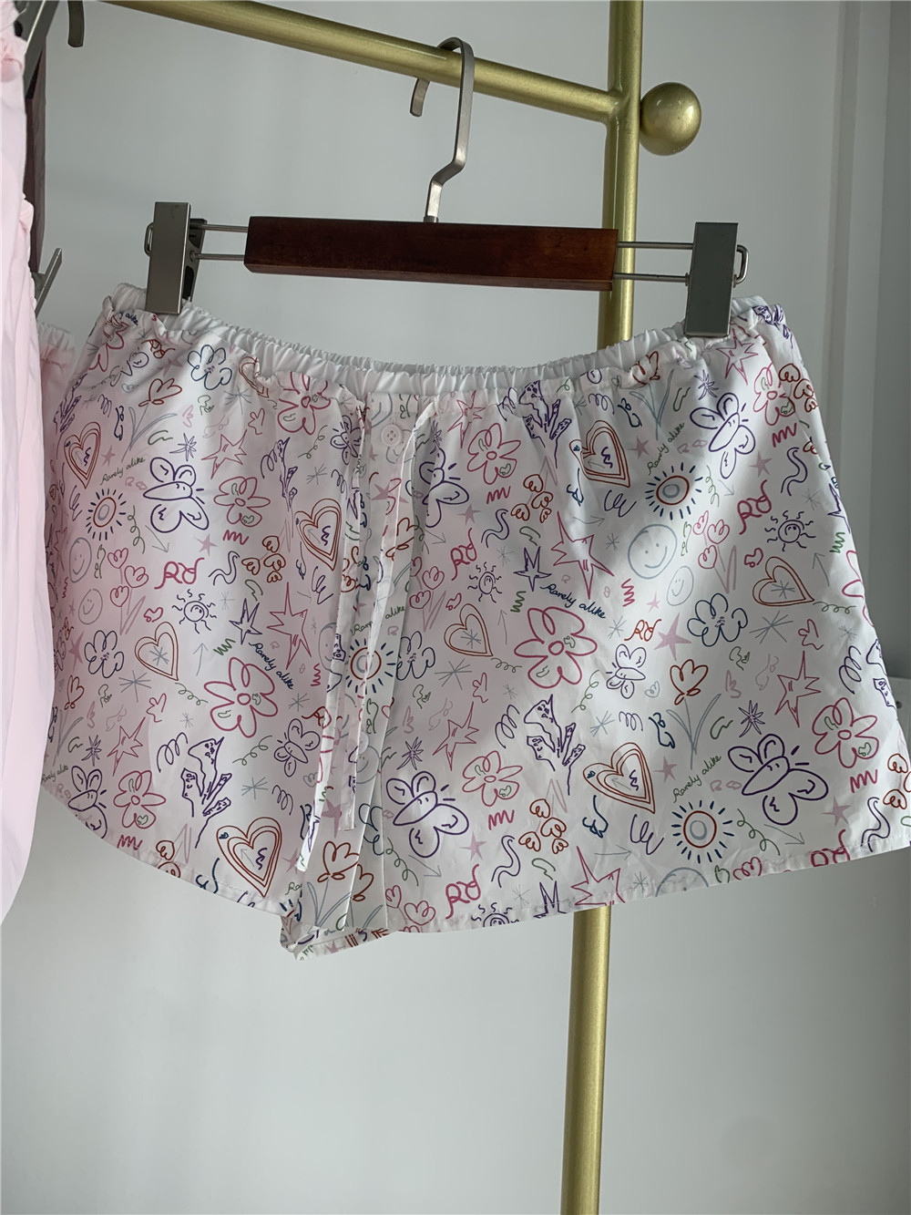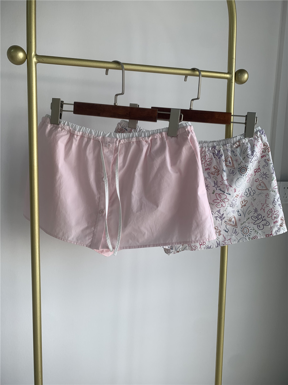 스팟 이지 스트랩 셔츠 미니 퀼로트 신축성 있는 허리 로우 웨이스트 반바지 스커트 여성용 라이트 핑크/그래피 프린트