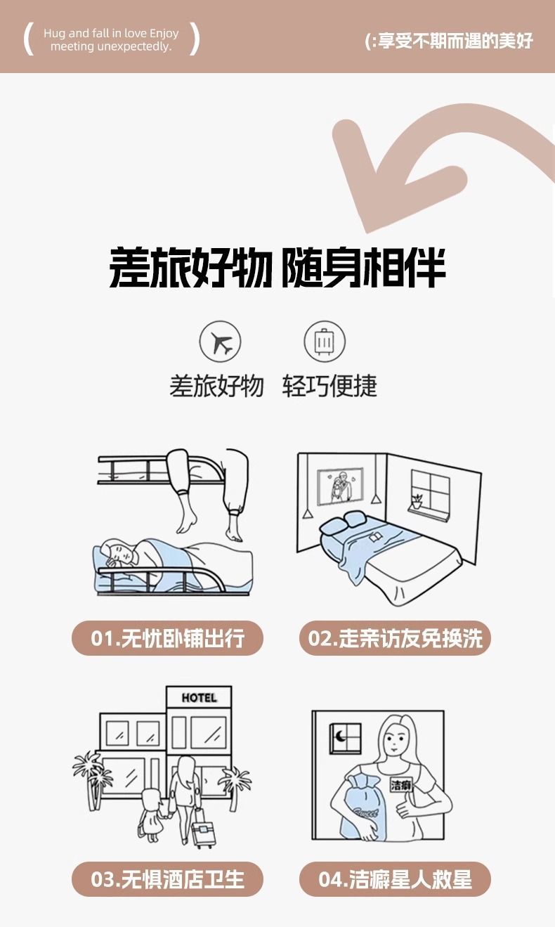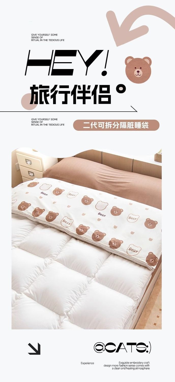 2세대 탈착식 순면 호텔 더티 침낭 여행용 슬리퍼 싱글 휴대용 이불 커버 4종 세트스토어 가기
