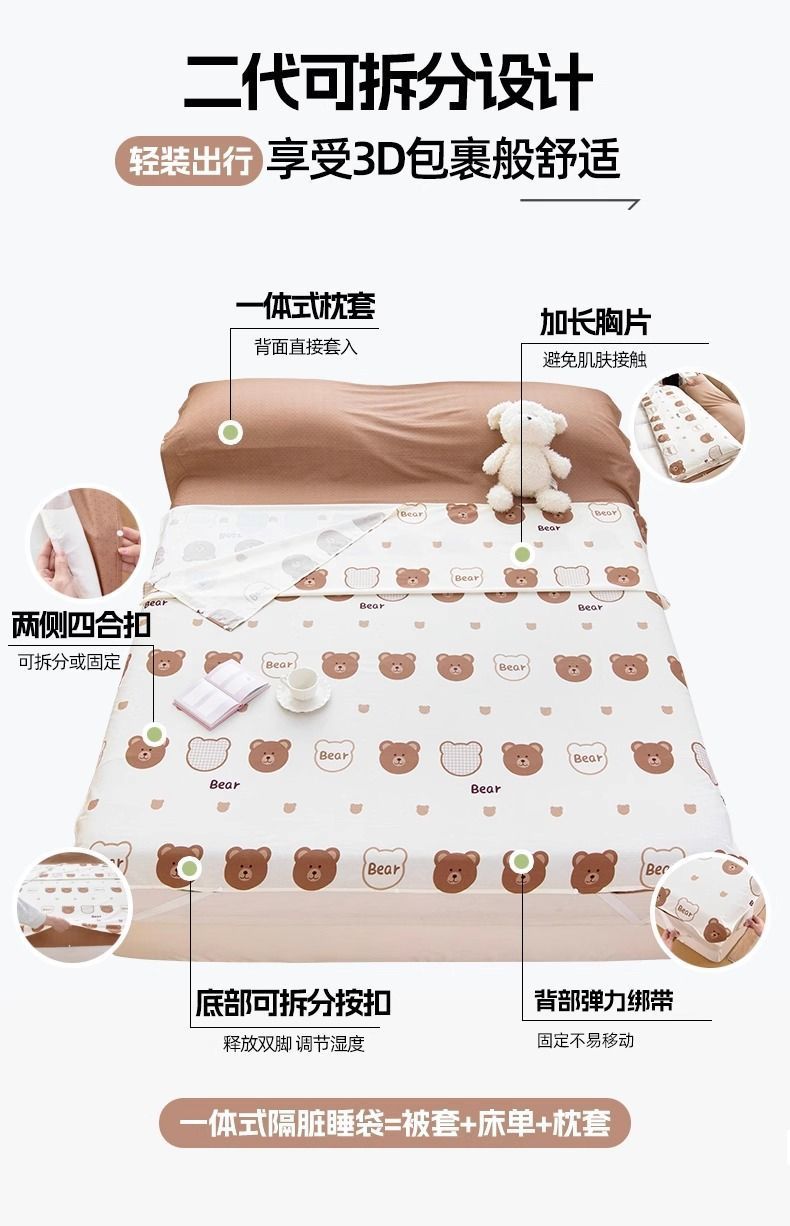 2세대 탈착식 순면 호텔 더티 침낭 여행용 슬리퍼 싱글 휴대용 이불 커버 4종 세트