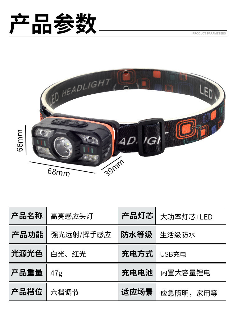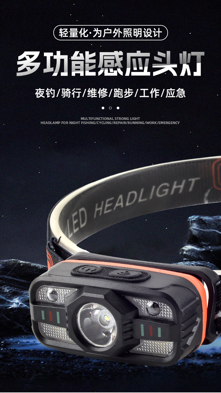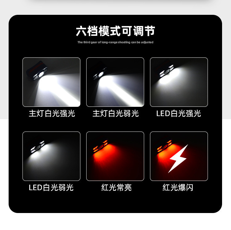 국경 간 유도 헤드 라이트 다기능 충전식 야간 달리기 미니 소형 헤드 라이트 야외 LED 야간 낚시 강한 빛 머리 장착형