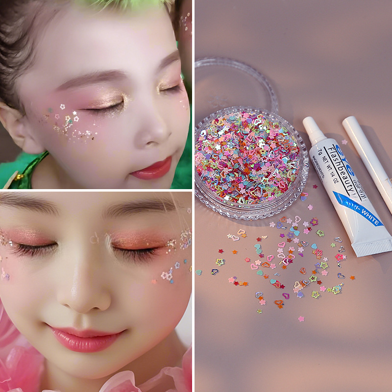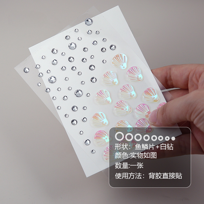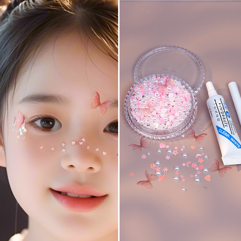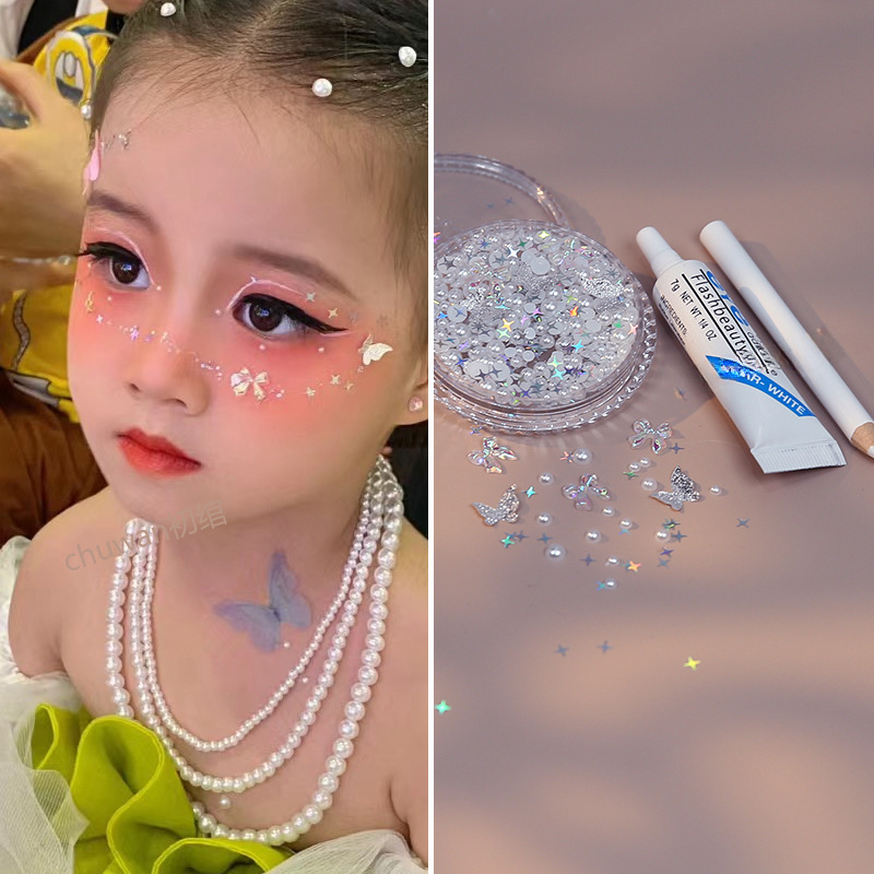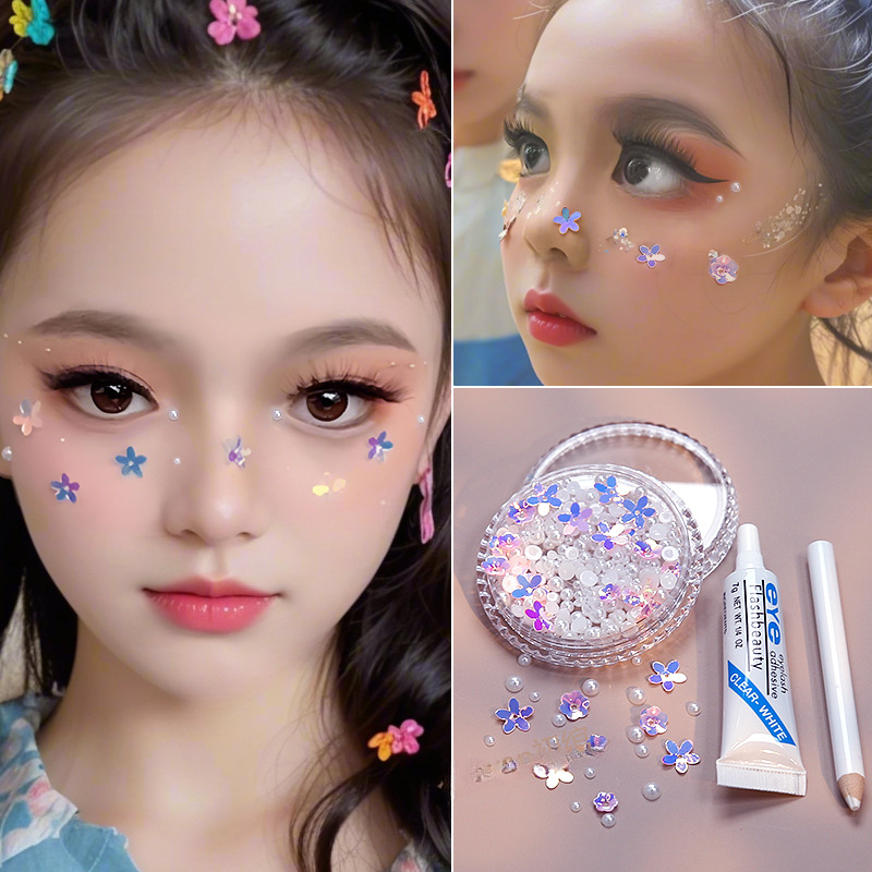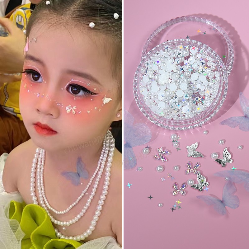 어린이 공연 얼굴 장식품 진주 라인스톤 나비 꽃 얼굴 스티커 장식 자체 접착식 접착제 없음
