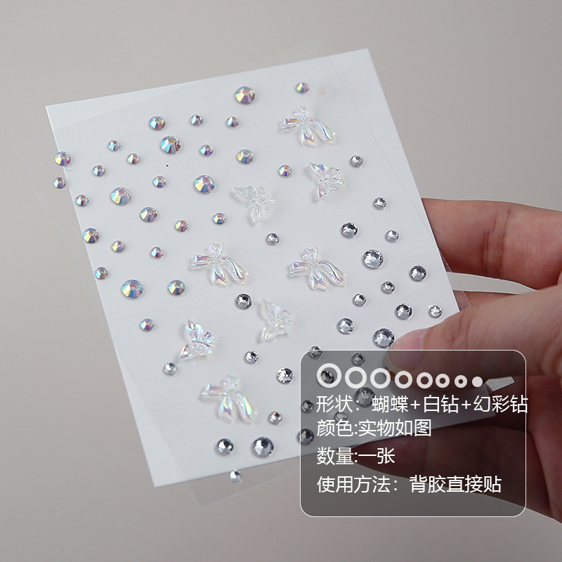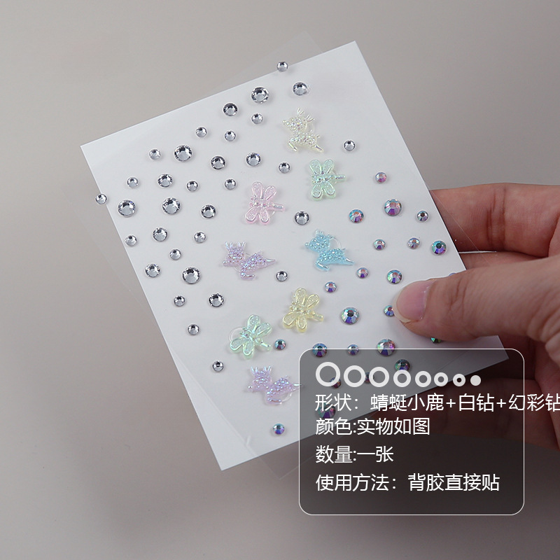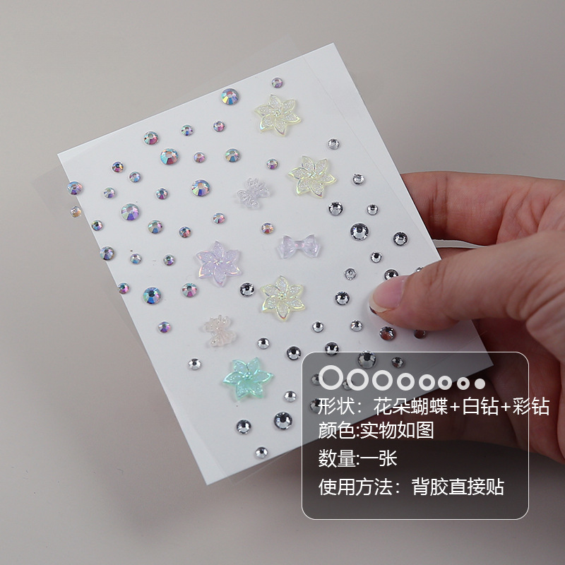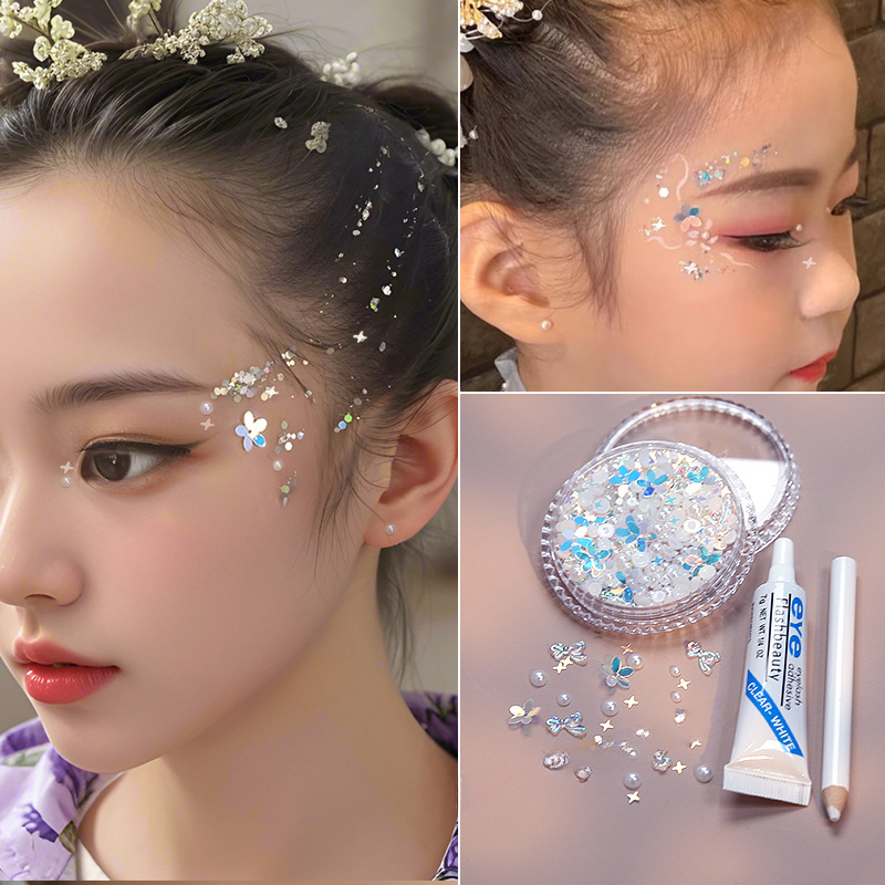 어린이 공연 얼굴 장식품 진주 라인스톤 나비 꽃 얼굴 스티커 장식 자체 접착식 접착제 없음스토어 가기