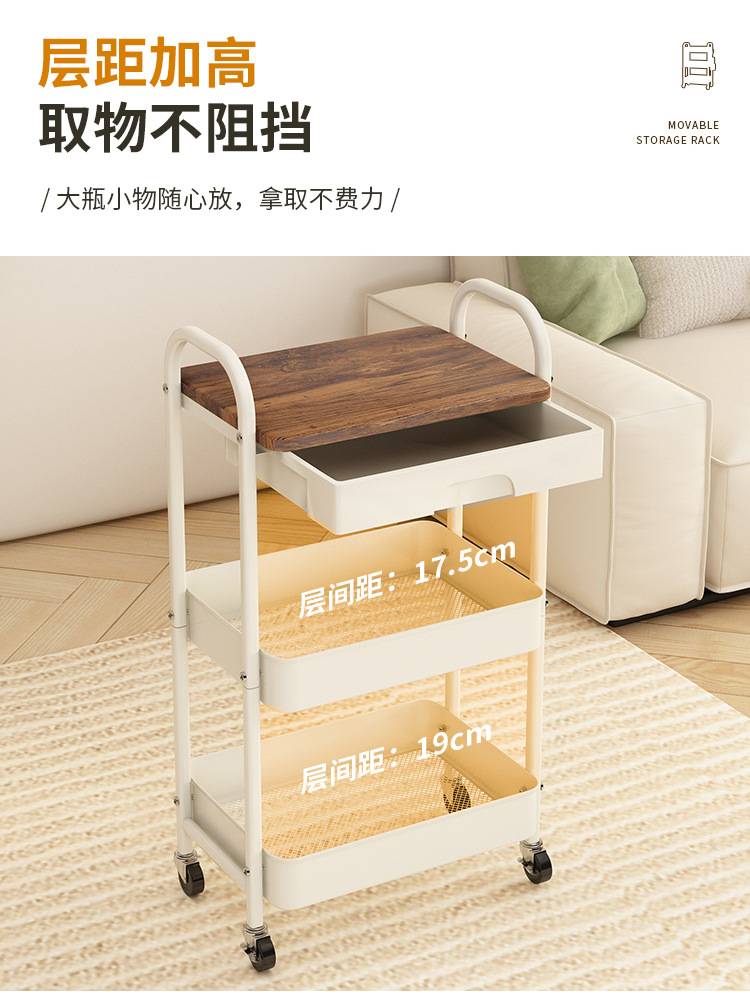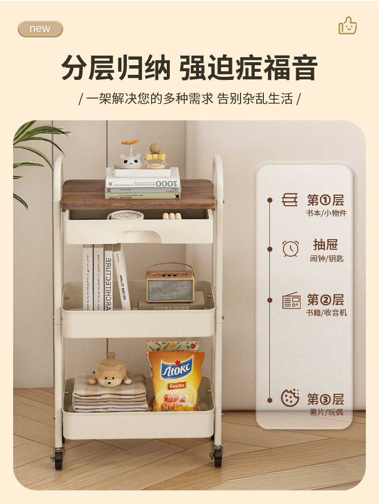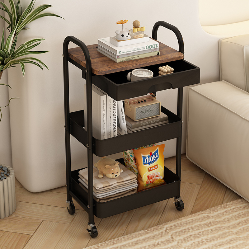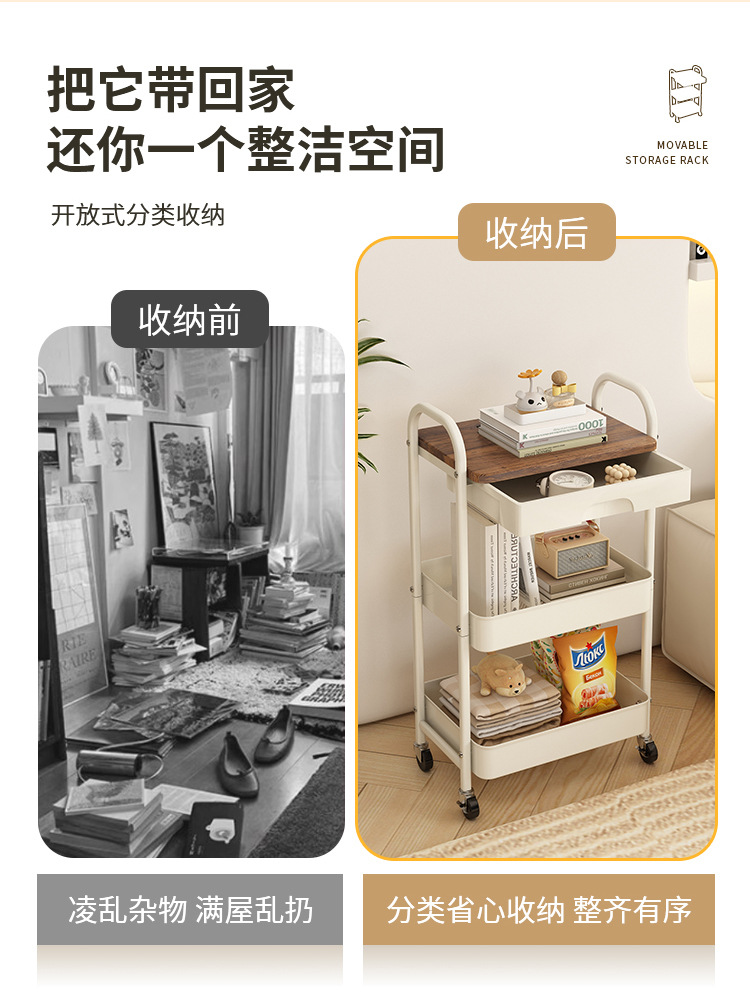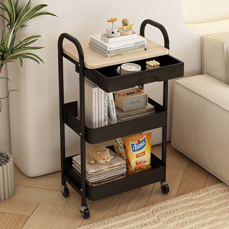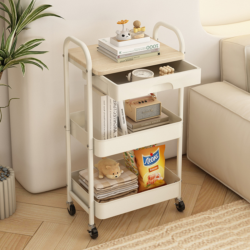 범용 휠이있는 침실 스낵 보관 랙 이동식 보관 카트 제조 업체 도매 주방 거실 트롤리 보관 랙