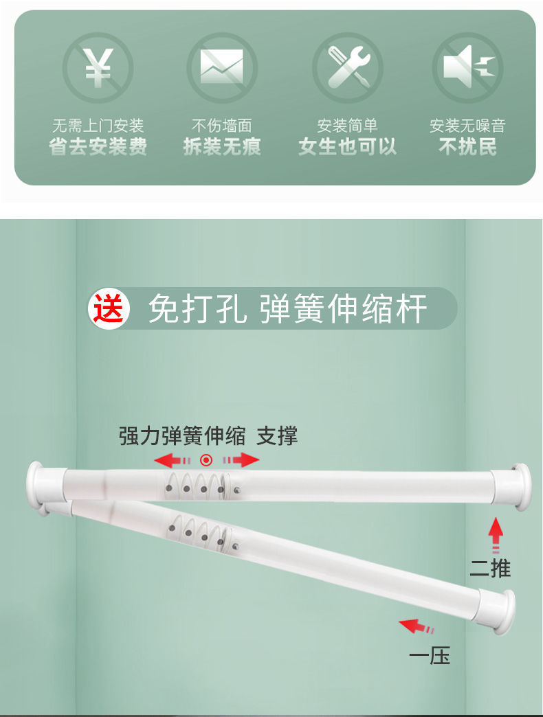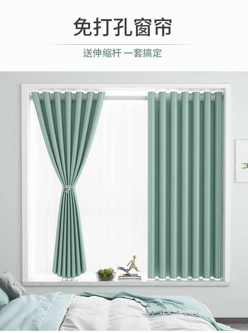 침실 펀치 프리 커튼 텔레스코픽 막대 간단한 설치 전체 차광 2021년형 창문 차양 천 86 세트스토어 가기
