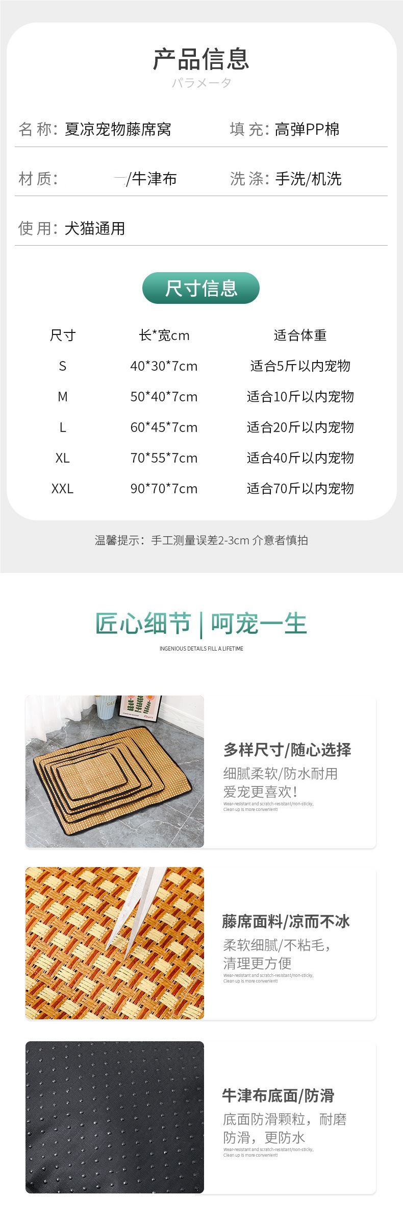 강아지 매트, 여름 수면 매트, 테디 개집, 고양이 냉각 매트, 고양이 개집 사각 가방, 애완동물 밀짚 매트