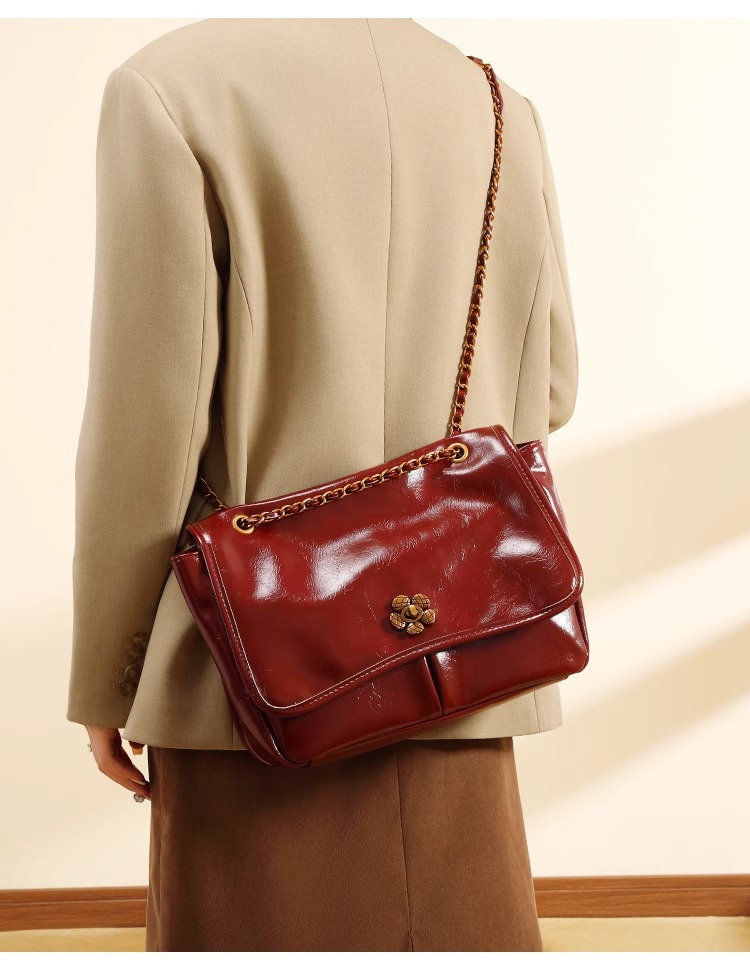 국경 간 AliExpress 인기 소가죽 체인 토트 백, 패셔너블하고 다재다능한 소형 사각형 가방, 대용량 겨드랑이 숄더백